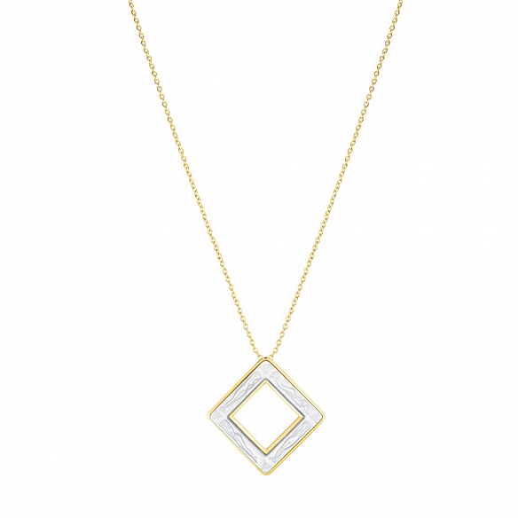 Bacchantes rhombus pendant in the "Clear" variant, made of crystal with a metal chain. Elegant and refined, the Bacchantes pendant represents four sculptural bas-relief nudes, which express an overwhelming sensuality and exuberant femininity. A jewel to wear to express romance and passion. Designed by René Lalique.