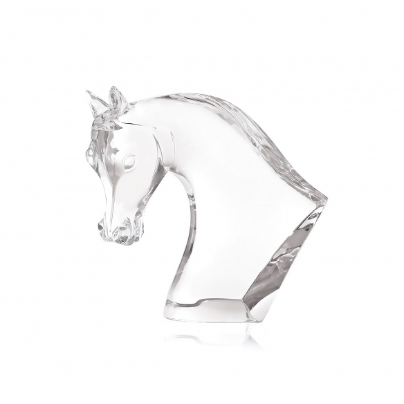 Horse's Head sculpture made of crystal. Originally created by Marc Lalique in 1953, the Horse's Head crystal sculpture is a masterpiece weighing over 40 kilograms of pure craftsmanship. Painstakingly handcrafted over three days, this crystal sculpture illustrates the talent and passion of Lalique master glassmakers in their pursuit of excellence. Ultra-contemporary and profoundly brilliant representation, the result is a sumptuous horse head.