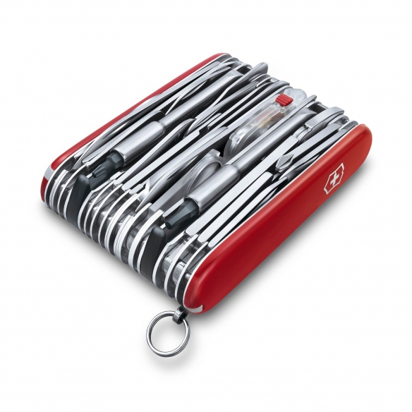 The Swiss Champ XXL Multi-Use Knife, made of ABS/Cellidor by Victorinox, is an essential accessory for anyone who needs a reliable and functional multi-tool that can assist in a wide array of daily situations. The handle of the knife is comfortable, stable, and practical. This tool incorporates an impressive 73 different functions, making it the perfect tool for any job, whether indoors or outside. It includes a large blade, small blade, corkscrew, 1.5 mm mini screwdriver, 2.5 mm screwdriver, 3 mm and 6 mm screwdrivers, reamer, punch, sewing awl, scissors, wood saw, nail file, nail cleaner, metal file, metal saw, Phillips screwdriver 1/2, multi-purpose hook, magnifying glass, 4 mm chisel, key ring, pin, tweezers, toothpick, metal file, wire cutter, wire crimper, bottle opener, multi-purpose pliers, can opener, fish scaler, ruler, pressurized ballpoint pen, and much more. The Swiss Champ XXL Multi-Use Knife boasts a slim profile that makes it perfect for carrying in your pocket or for display in your personal collection. An ideal gift for collectors and DIY enthusiasts, purchase it right here, on Newpop.it!