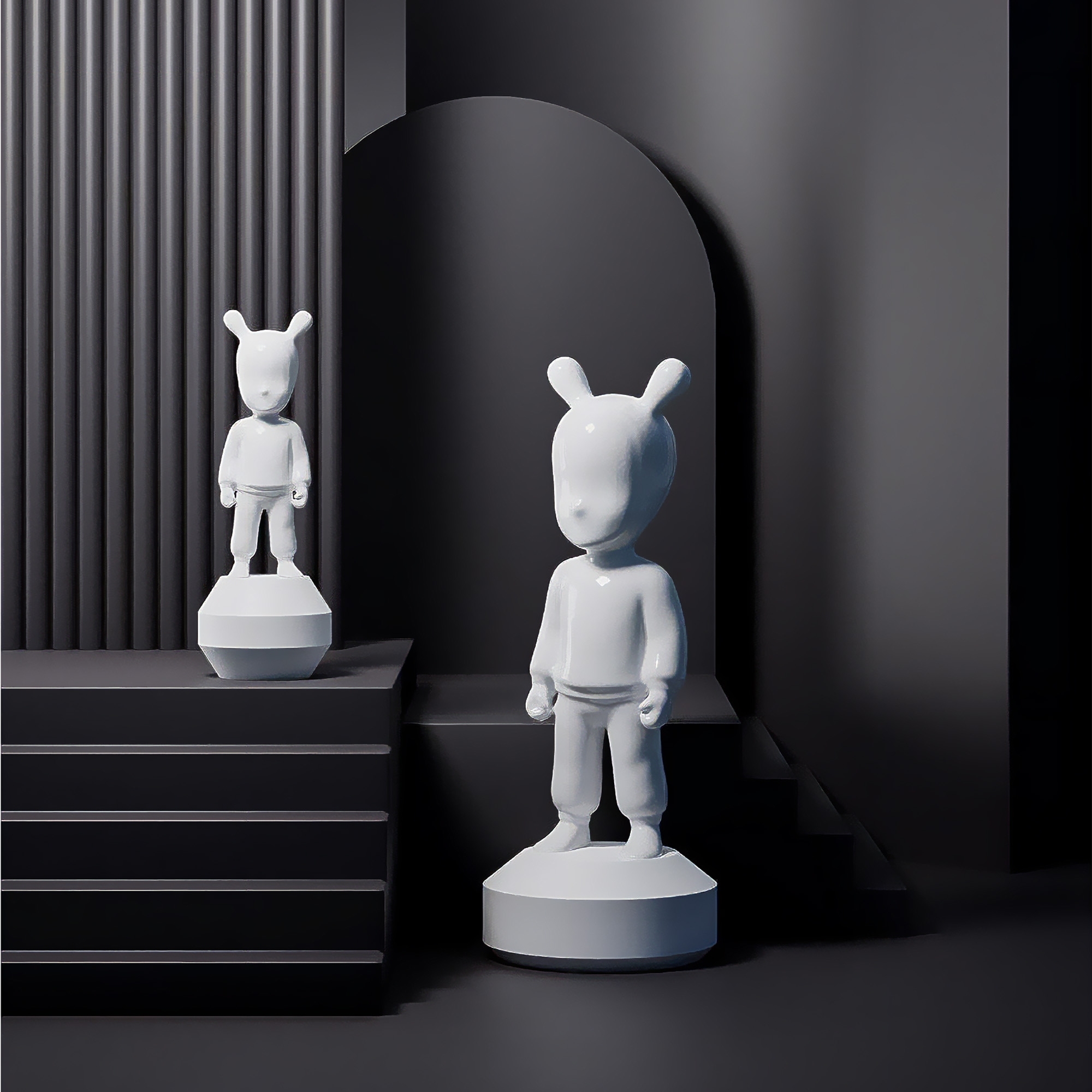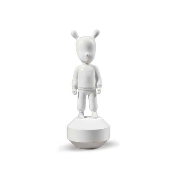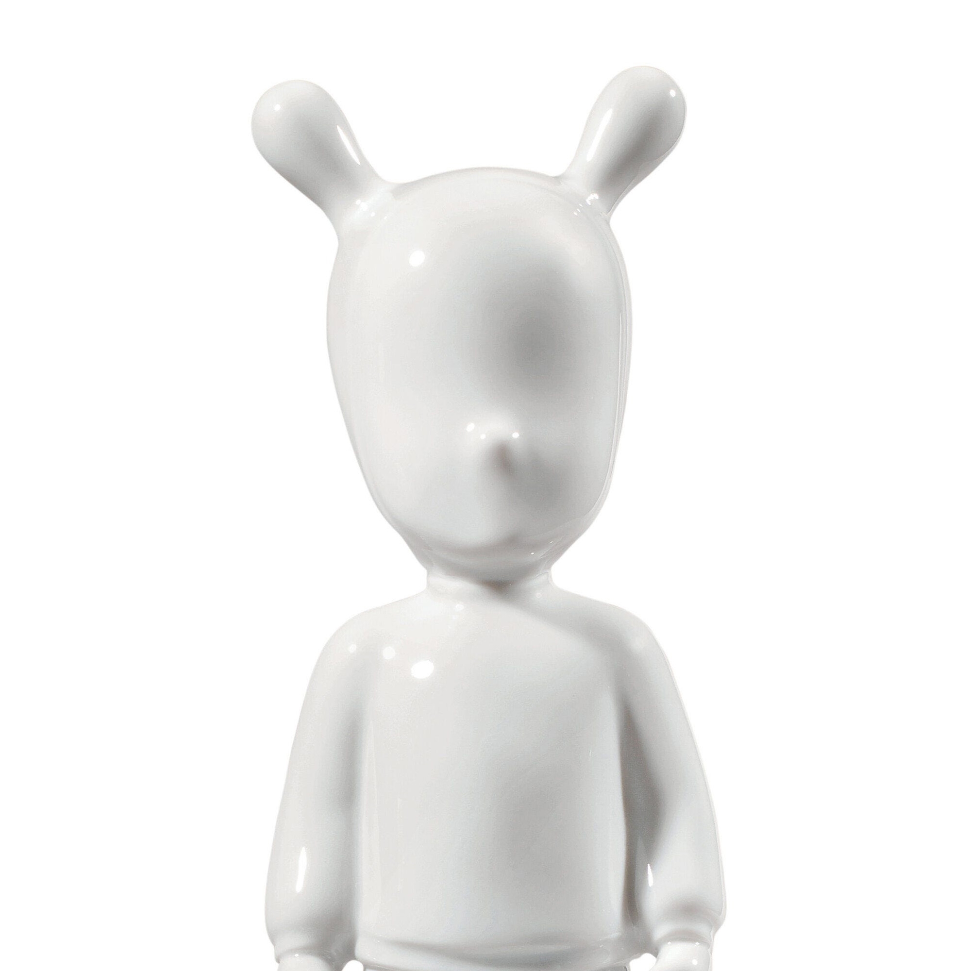 The White Guest figurine, small model, is a fantastic and delightful piece of art crafted by Lladró entirely in glossy white porcelain, with a white wooden base, materials admired for their elegance and longevity. The White Guest boasts a unique and modern design capable of adding a touch of elegance to your home; this figurine can be matched with any setting and style of decor, whether it's placed inside a classic design library, within a minimalist living room, or on the bedside table of an avant-garde bedroom, the The White Guest figurine is sure to catch the eye of all your friends and relatives. This figurine serves as an invitation to creative and sophisticated dialogue, becoming an icon that brings contemporary art into homes. The small model is perfect for collectors and art lovers desiring a piece with strong character that is also adaptable to limited spaces. This decorative item embodies the desire to experiment within the limitless boundaries of porcelain art, always carrying with it the unmistakable savoir-faire of Lladró. Designed by Jaime Hayon and sculpted by Raul Rubio for Lladró.