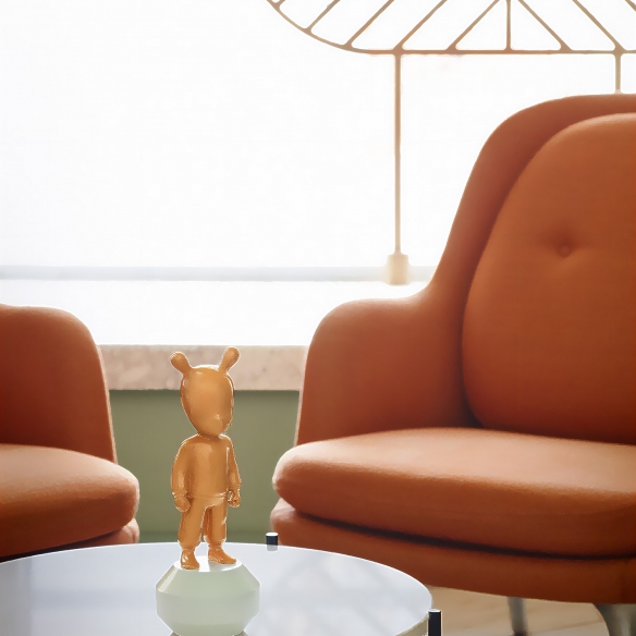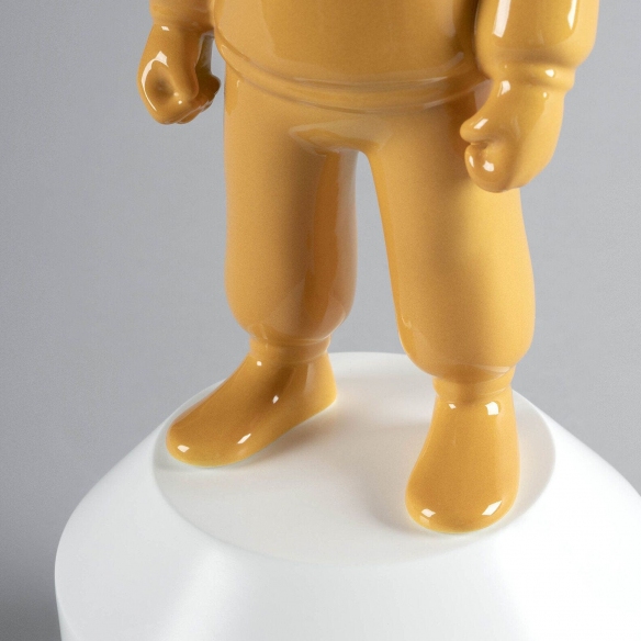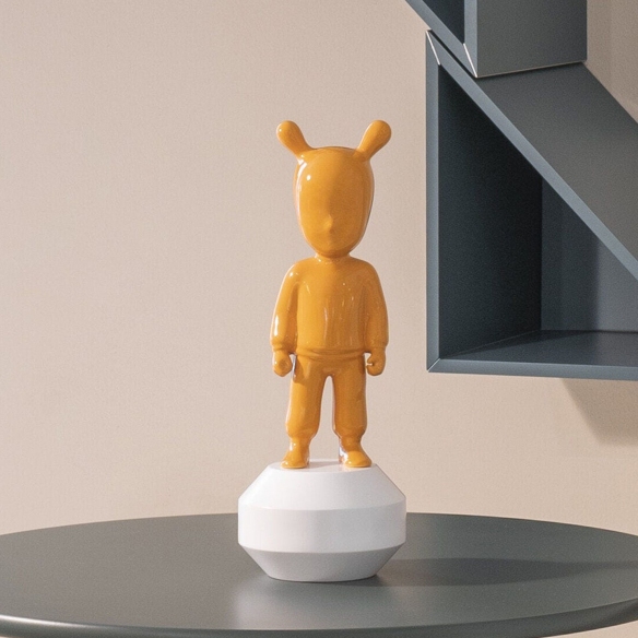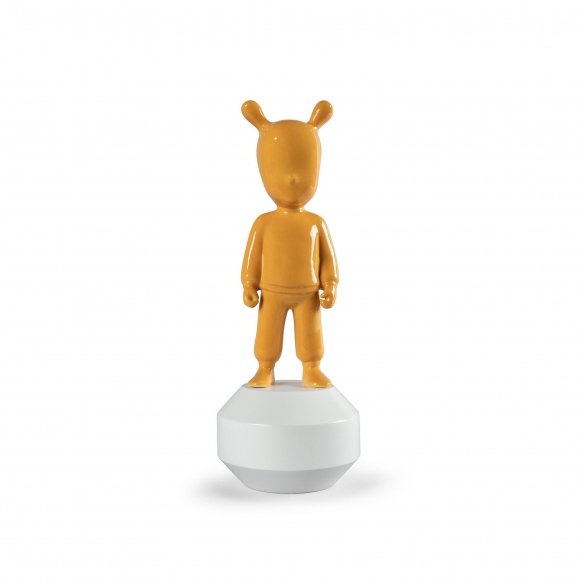 The Orange Guest figurine, small model, is a delightful and charming work of art crafted entirely by Lladró in shiny orange porcelain, and with a white wooden base, materials revered for their elegance and longevity. The Orange Guest showcases a unique and modern design, capable of adding a touch of elegance to your home; this figurine can be matched with any environment and style of decor: whether it is placed inside a library with a classic design, in a minimalist living room, or on a bedside table in a cutting-edge bedroom, the The Orange Guest figurine will capture the attention of all your friends and family members. This figurine acts as an invitation to sophisticated and creative dialogue, becoming an emblem that integrates contemporary art into homes. The small model is perfect for collectors and art enthusiasts who desire a piece with a strong character but that also adapts to limited spaces. This decorative item embodies the desire to explore the endless boundaries of the art of porcelain, always carrying with it the unmistakable savoir-faire of Lladró. Designed by Jaime Hayon and sculpted by DAISA for Lladró.