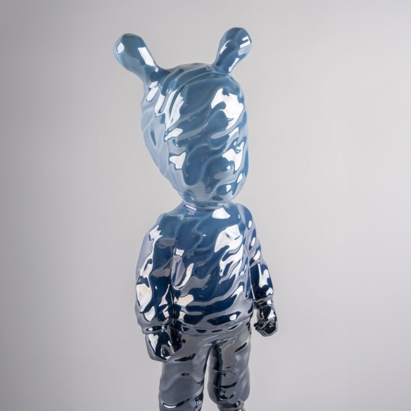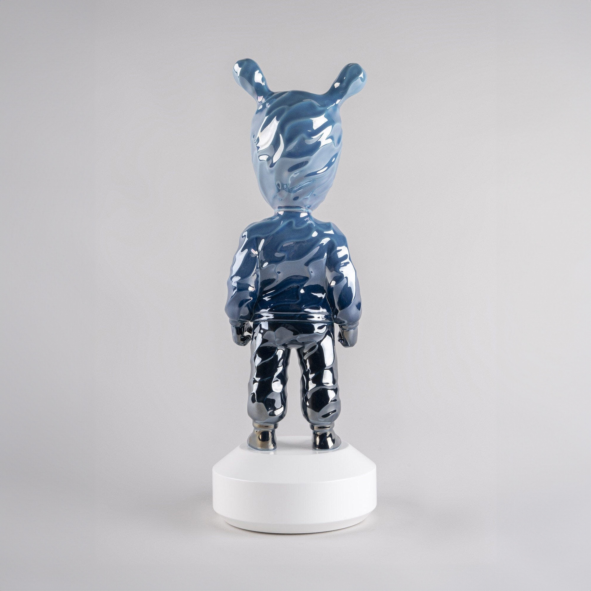 The Guest figurine by Supakitch, in its large model, is a fantastic and delightful work of art made by Lladró entirely in blue, black, and gray porcelain, with a white wooden base, materials admired for their elegance and longevity. The Guest features a unique and modern design, capable of adding a touch of friendliness to your home; this figurine can be paired with any setting and style of decor: whether it's placed inside a library with a classic design, within a minimalist living room, or on a bedside table in an avant-garde bedroom, The Guest figurine by Supakitch will capture the gaze of all your friends and relatives. This figurine acts as an invitation to creative and imaginative dialogue, becoming an icon that brings contemporary art into homes. The large model is for collectors and art lovers who desire a piece with a strong and bold character. This decorative product embodies the desire to explore the infinite boundaries of porcelain art, always carrying with it the unmistakable savoir-faire of Lladró. Designed by Supakitch and sculpted by Raul Rubio for Lladró.