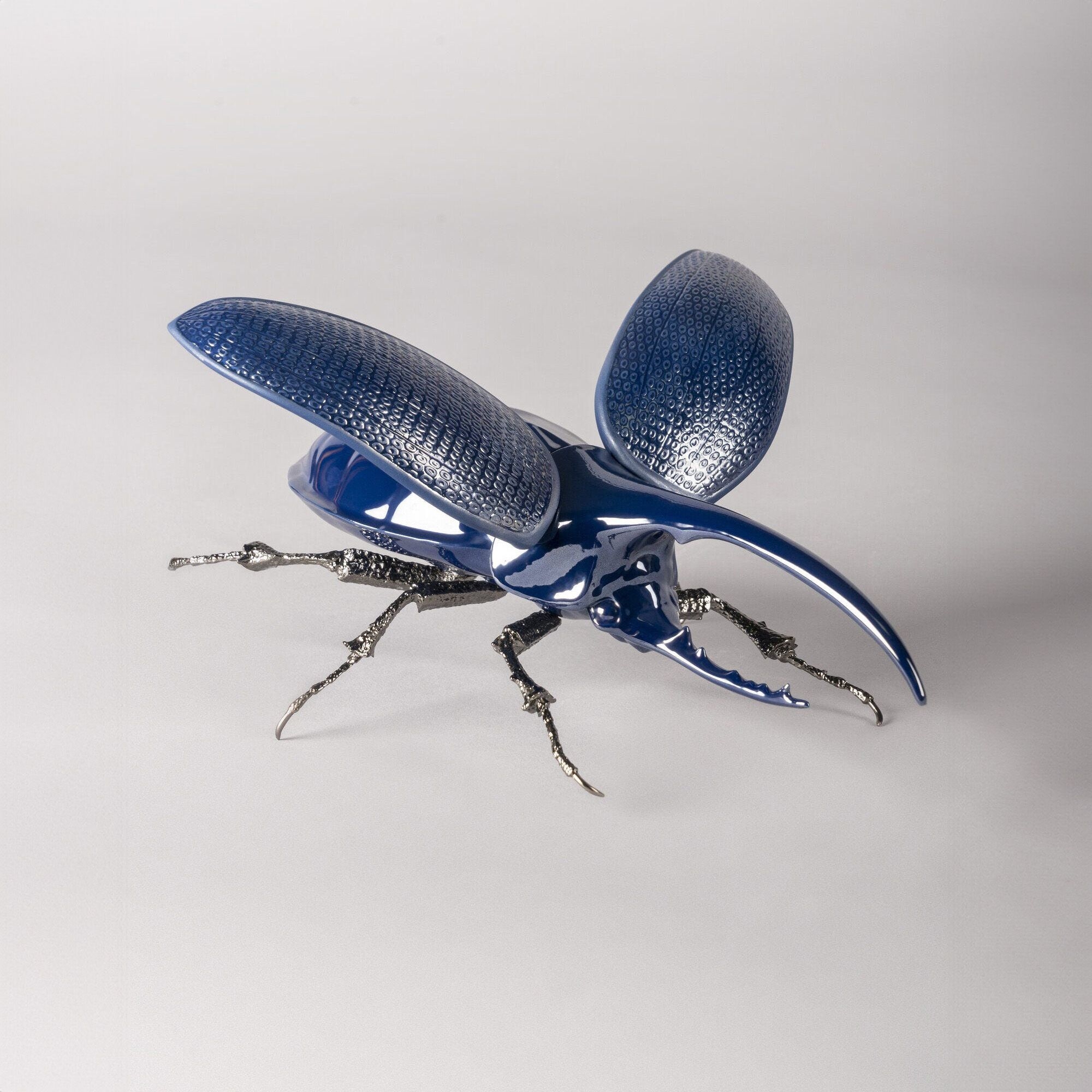 The Hercules Beetle figure is a magnificent jewel from the Extraordinary Insects collection crafted by Lladró in glossy porcelain adorned with a pearlescent luster, and brass legs with a graphite finish, materials praised for their resistance and durability. This beautiful sculpture is perfect for those who love nature and effortlessly matches any setting and decorating style: whether placed in a modern living room, on a bedroom nightstand, or in an office, the Hercules Beetle will capture your guests' attention and become the focal point of any space. The Hercules Beetle figure is an ideal gift idea for anyone who appreciates nature-inspired art; whether for a housewarming or other special occasions, the Hercules Beetle will never disappoint. Designed by José Luis Santes for Lladró.