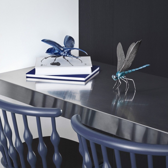 The Dragonfly Figure is an original design piece crafted by Lladró in glossy porcelain decorated with pearlescent luster, and featuring legs and wings made of brass with a graphite finish — high-quality materials that ensure durability and longevity. This beautiful sculpture is ideal for nature lovers and perfectly matches any setting and decorating style, whether placed in a modern living room, on a bedroom nightstand, or in an office. This sculpture will capture the attention of your guests and become the focal point of any space. The Dragonfly Figure is perfect as a gift idea for everyone who appreciates nature-inspired art; whether for a housewarming or other special occasions, the Dragonfly Figure will never disappoint. Designed by José Luis Santes for Lladró.