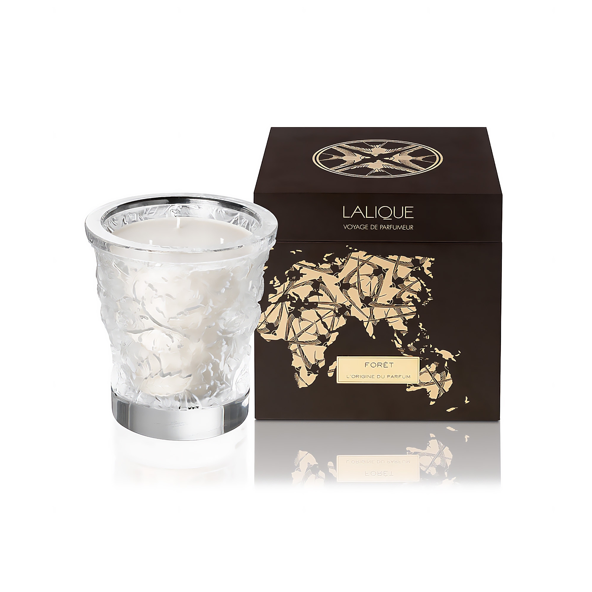 The Forest scented candle by Lalique is an olfactory celebration that transports the senses directly into the fantastical world of dreams and desires. The candle holder of this fabulous olfactory artwork is made of transparent crystal, elegant and unique, depicting sculptural shapes that create intense light reflections and patterns, evoking the tranquility and majesty of an enchanted forest; the fragrance is inspired by a deep, misty forest. The combination of notes of cedarwood, sandalwood, guaiac wood, birch, moss, clove, and patchouli invites you on a journey to the heart of wild nature, ennobled by the presence of essences selected for their quality and harmony. Once diffused in the air, this fragrance brings with it the promise of a relaxing and welcoming atmosphere that only a luxury candle like Lalique’s can offer. Moreover, with a burn time of 80 hours, the candle ensures extended olfactory pleasure; the candle holder can also be used as a vase after removing the wax residue. This decorative product is perfect for enriching any space in your home with both its unique design and unparalleled fragrance. Perfumer: Anne-Louise Gautier for Lalique.