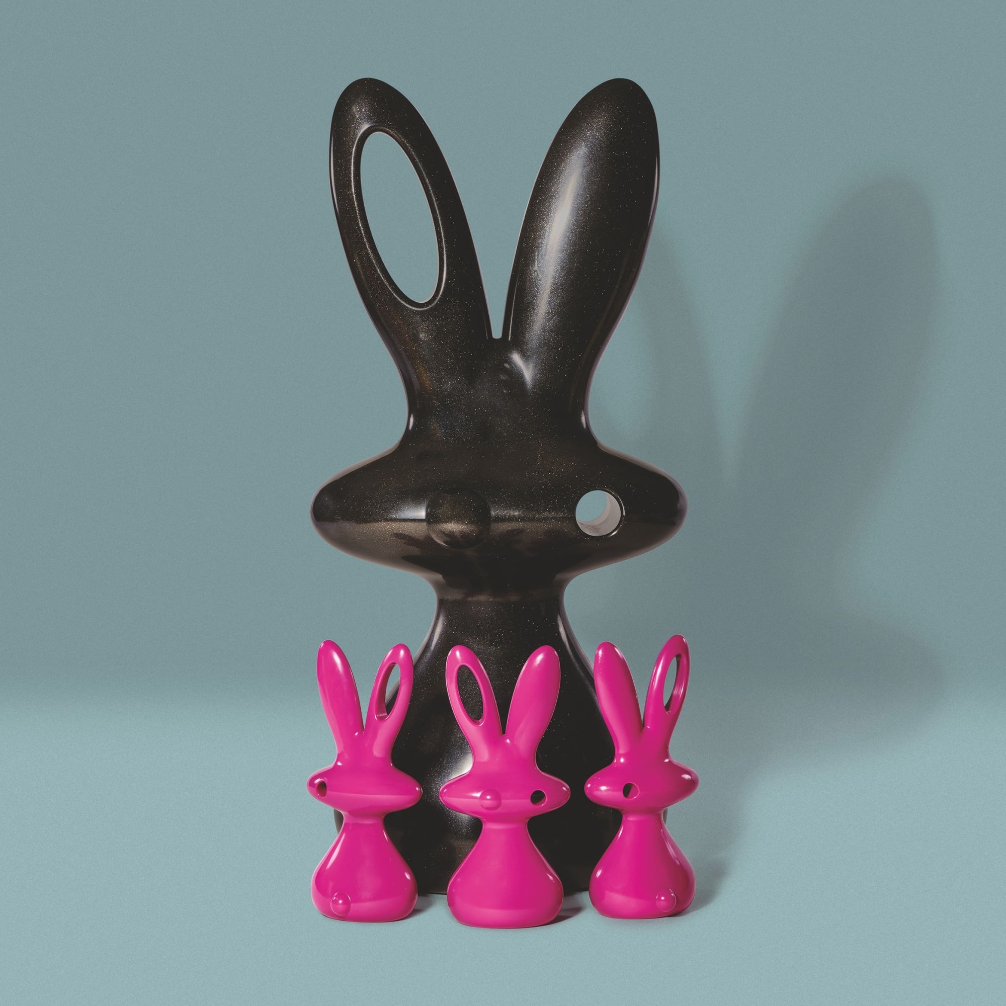 The Cosmo Bunny sculpture, standing at 185 cm, is made by Slide from polyethylene, a material known for its durability and resilience. This delightful sculpture was created in 2008 from the collaboration between the renowned Japanese artist Aki Kuroda and Slide's founder, Giò Colonna Romano, where the blend of art and design reached its peak in terms of creativity and research. The sculpture is characterized by smooth lines, a multitude of colors, and a playful shape that presents a friendly depiction of the rabbit, an animal loved by both adults and children for its sweetness and vitality. Add a touch of originality and brightness, transforming any space into a corner of pure joy and imagination with the Cosmo Bunny sculpture: from the living room to the bedroom, from the office to your children's room, Bunny becomes a true companion in life. Discover the magic with Slide's Cosmo Bunny sculpture: more than just a decorative object, it is a real design element. Purchase it right here, on Newpop.it! Designed by Aki Kuroda for Slide.