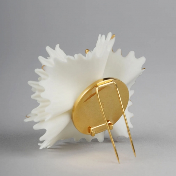 The Actinia Large Earring - White and Gold - is a captivating jewel that draws the eye, expertly crafted by Lladró in matte white porcelain with metallic details in 3-micron gold-plated 925 sterling silver, and designed by Raluca Buzura. This striking earring is inspired by the exceptional diversity and beauty of the marine world and is easily matched with various styles, making it extraordinarily versatile: perfect for adding a touch of elegance to a casual outfit or as a standout element for more formal occasions, the Actinia Large Earring - White and Gold - is a piece that captures attention. More than a mere accessory, this earring is an authentic connection between marine nature and art, conveying sensitivity and a passion for refinement. Designed by Raluca Buzura for Lladró.