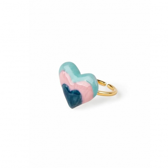 The Rainbow ring is a wonderful piece of jewelry, handcrafted by the skilled artisans at Lladró in gold-plated sterling silver, with a heart-shaped piece made of glossy porcelain in turquoise, pink, and blue hues. The ring is inspired by the beauty of love that stretches like a rainbow. The Rainbow ring is not just an accessory, but a statement of style that carries with it the prestige and craftsmanship of Lladró. It is ideal for those seeking a distinctive, elegant, and bold piece. Wearing this ring is like carrying a work of art with you.
