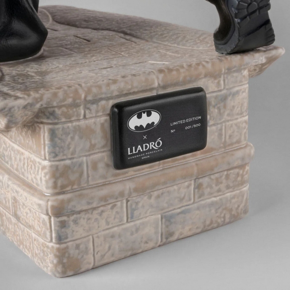 Batman is an exclusive collector's item, a marvelous limited edition sculpture crafted by Lladró in matte porcelain, chosen to enhance the decoration that combines the matte and glazed tones of black, with some touches of golden luster. This sculpture depicting the legendary hero of Gotham City is a valuable addition for all Batman and comic book enthusiasts, as well as admirers of luxury art and design. The adventures of Batman have fueled the fantasies of many generations of fans around the world. Whether placed on a bedroom shelf, in the living room, or on an office desk, this exquisite piece of art will enrich any setting. The porcelain Batman sculpture is the result of a combination of traditional craftsmanship and a contemporary spirit that captures the essence of one of the world's most iconic superheroes. Designed by Eva Maria Cuerva for Lladró.