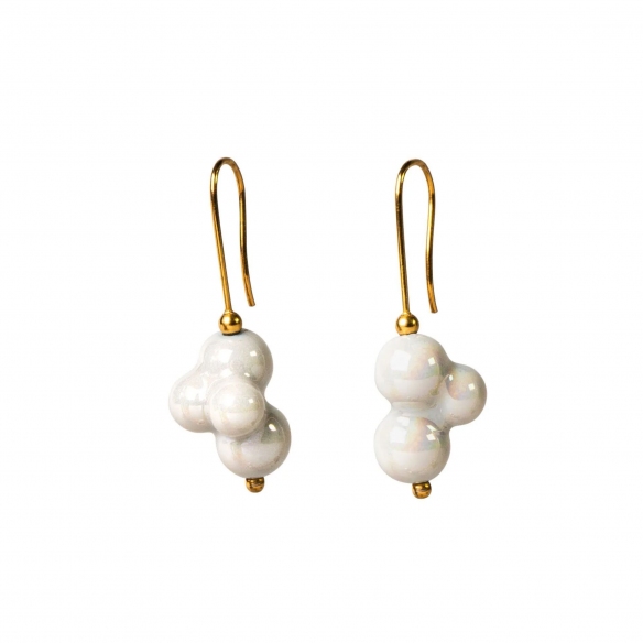 The Bubbles earrings have been crafted by Lladró in iridescent white porcelain, breathing life into the color dynamics characteristic of both soap bubbles and pearls, and represent a piece that combines the delicacy of its well-known materials with the modernity of a unique and captivating design. The choice of color gives the jewel incredible versatility, making it suitable for both formal occasions and more casual moments, capable of adding a uniquely sophisticated touch to any outfit. Ideal for those searching for a jewel that expresses timeless elegance alongside modernity, the Bubbles earrings are undoubtedly a choice that captures attention and enriches the personality of the wearer. Designed by Susana Rodriguez for Lladró.