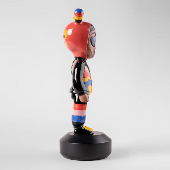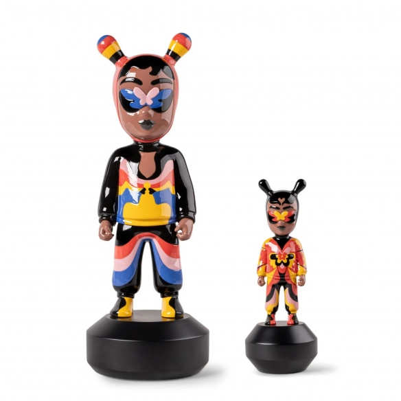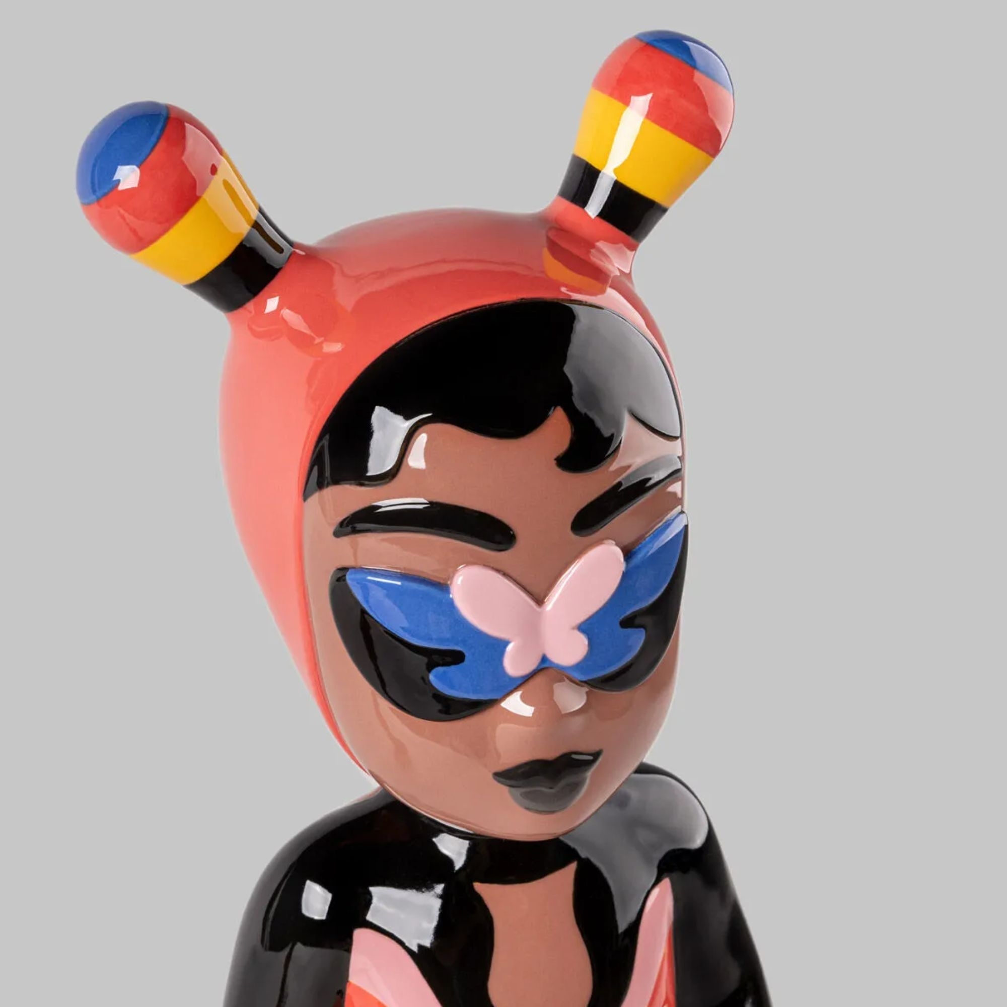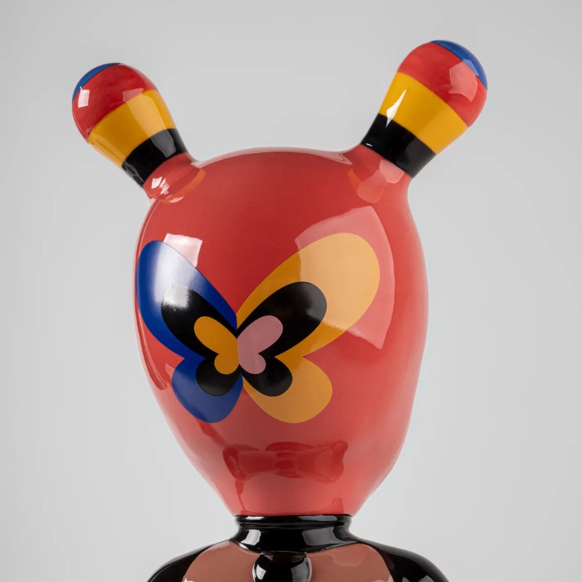 The Guest by Jade Purple Brown, in its large model limited edition, is a wonderful and friendly piece of art created by Lladró entirely in glossy porcelain, a material revered for its elegance and longevity. Purple Brown, a talented New York-based stylist, joins this prestigious family with the first models of The Guest. Her work is characterized by imagery that centers on women with a pop aesthetic. The Guest features a unique and modern design, and thanks to its vivid colors and slightly imperfect abstract shapes, it can add a touch of playfulness to your home; this figurine matches any setting and style of decor: whether placed within a classically designed library, inside a minimalist living room, or on the nightstand in an avant-garde bedroom, The Guest by Jade Purple Brown will catch the eye of all your friends and relatives. This sculpture stands as an invitation to creative and imaginative dialogue, becoming an icon that brings contemporary art into homes. The large model is for collectors and art lovers who desire a piece with a bold and audacious character. This piece of home decor is an ode to femininity that challenges stereotypes, always carrying with it the unmistakable savoir-faire of Lladró. Designed by Jade Purple Brown and sculpted by Raul Rubio for Lladró.
