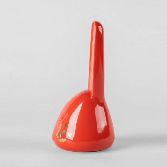 The Rabbit Red-Gold sculpture is a charming piece of decor created entirely in porcelain by Lladró. This exquisite sculpture depicts a rabbit, which in Chinese culture belongs to the zodiac and symbolizes empathy, reliability, and cheerfulness. Embracing an innovative and sophisticated design, the piece stands out with its striking decoration on a red background, enhanced by elegant details in bright gold. This aims to provide a more abstract and philosophical view of the animal, and its design is perfect for any setting: whether placed on a bedside table in the bedroom, in a child's room, or on a coffee table in the living room, The Rabbit is able to lend a touch of timeless Asian creativity. Crafted by Raul Rubio for Lladró.