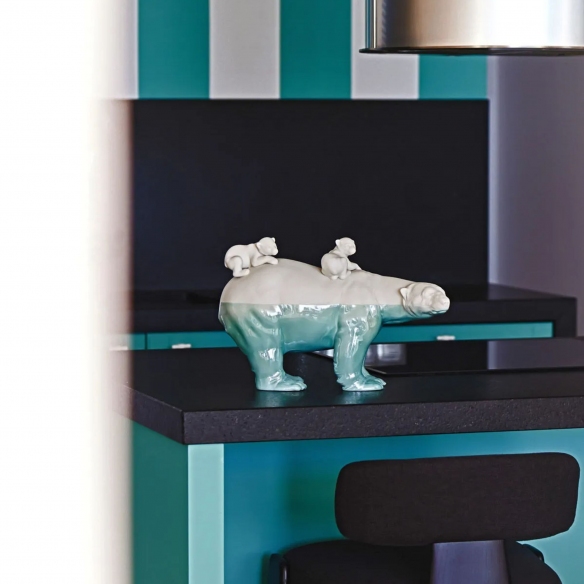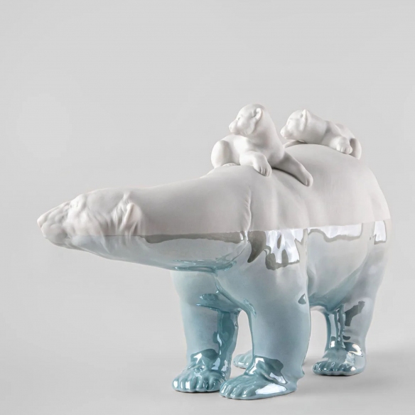 The porcelain sculpture "Mother Bear and Her Cubs" from the Underwater collection. This masterpiece, crafted with skill by our artists, celebrates the harmony between nature and art with details in shades of blue that evoke the depth of the sea. Perfect for those who love art and nature, this sculpture is not just a decorative piece, but also a symbol of the delicacy and strength of the marine environment. Add a touch of elegance and meaning to your space with "Mother Bear and Her Cubs Underwater," a handcrafted splendor that captures the essence of aquatic life.