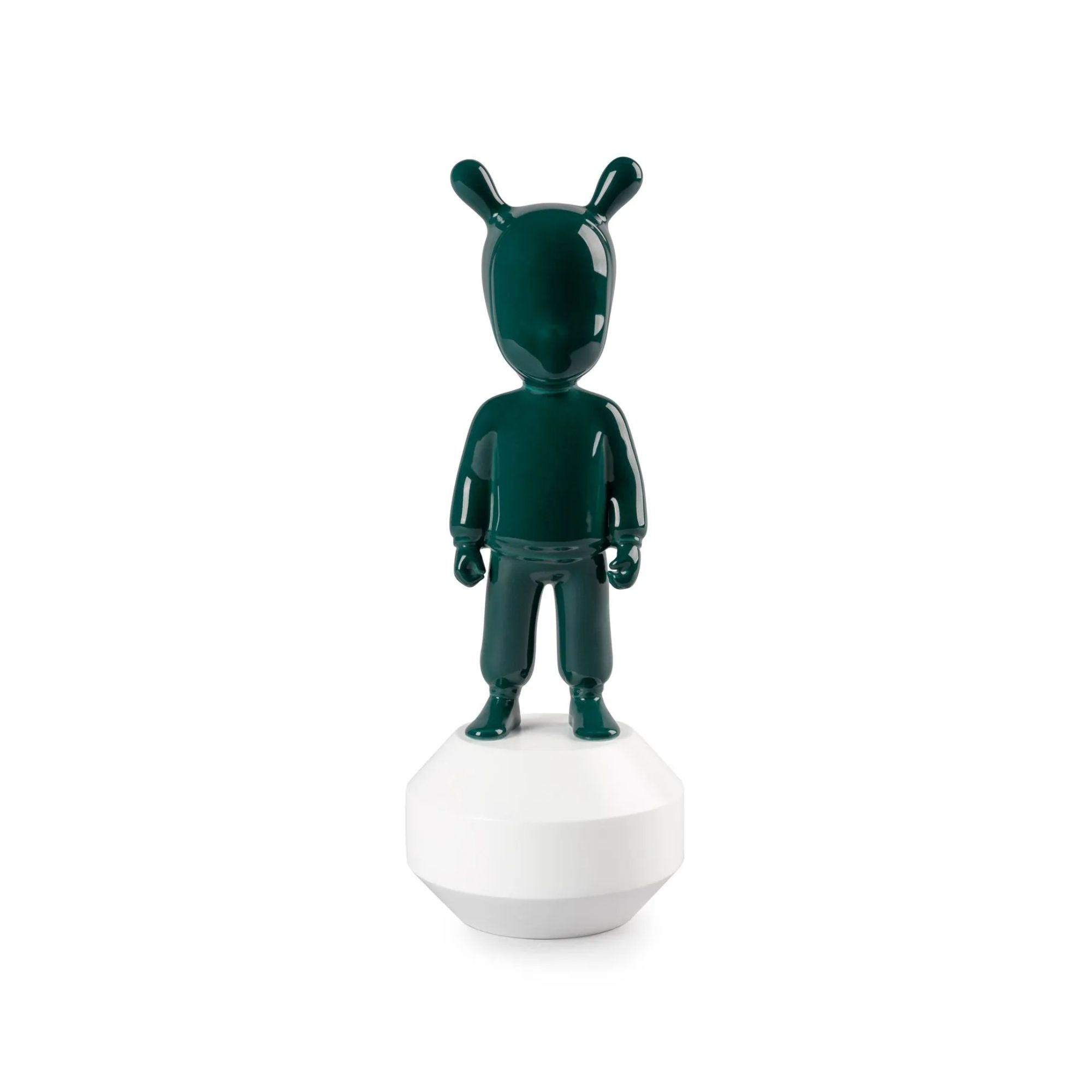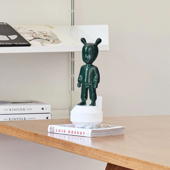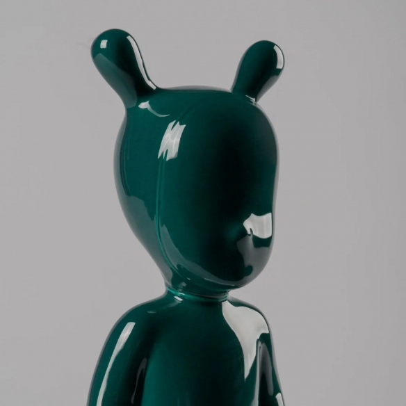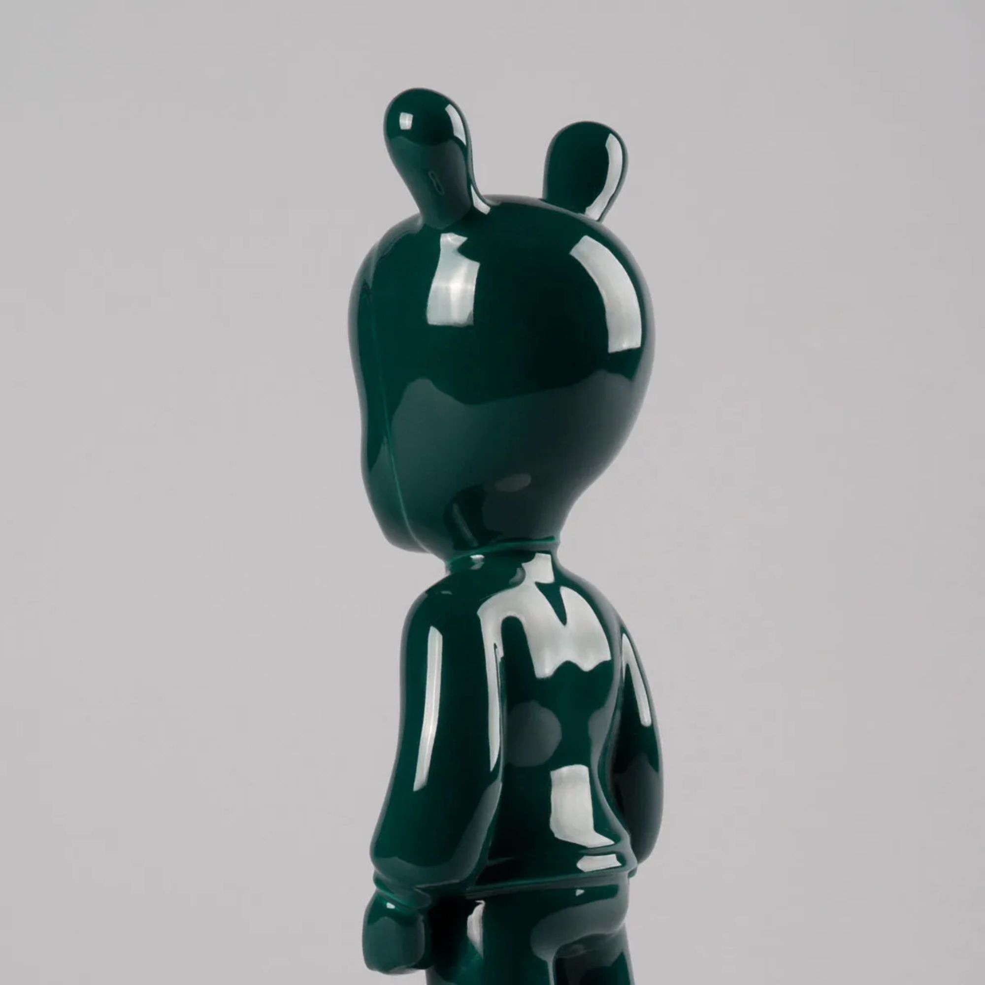 The Dark Green Guest sculpture, crafted in porcelain, emerges as a standout piece. The Guest, born from the visionary mind of renowned designer Jaime Hayon, acts as a blank canvas for artistic expression, attracting collaborations with prominent artists like Camille Walala, Henn Kim, Ricardo Cavolo, and Hayon himself. This series of partnerships has produced an exceptional variety of interpretations, spanning various artistic disciplines to celebrate boundless creativity. The Guest collection shines in its versatility, offering creations in both special editions and monochromatic versions that utilize the brand’s full color spectrum, from pastel shades to vibrant colors and cutting-edge metallics. The uniqueness of this version lies in its extraordinary color: a deep, dark green that adds a touch of elegance and mystery, prominently standing out against its white base. The Guest in dark green is not merely a sculpture; it is a focal point, inviting everyone to pause, observe, and be captivated by a presence that, despite changing hues, continues to enchant and engage.