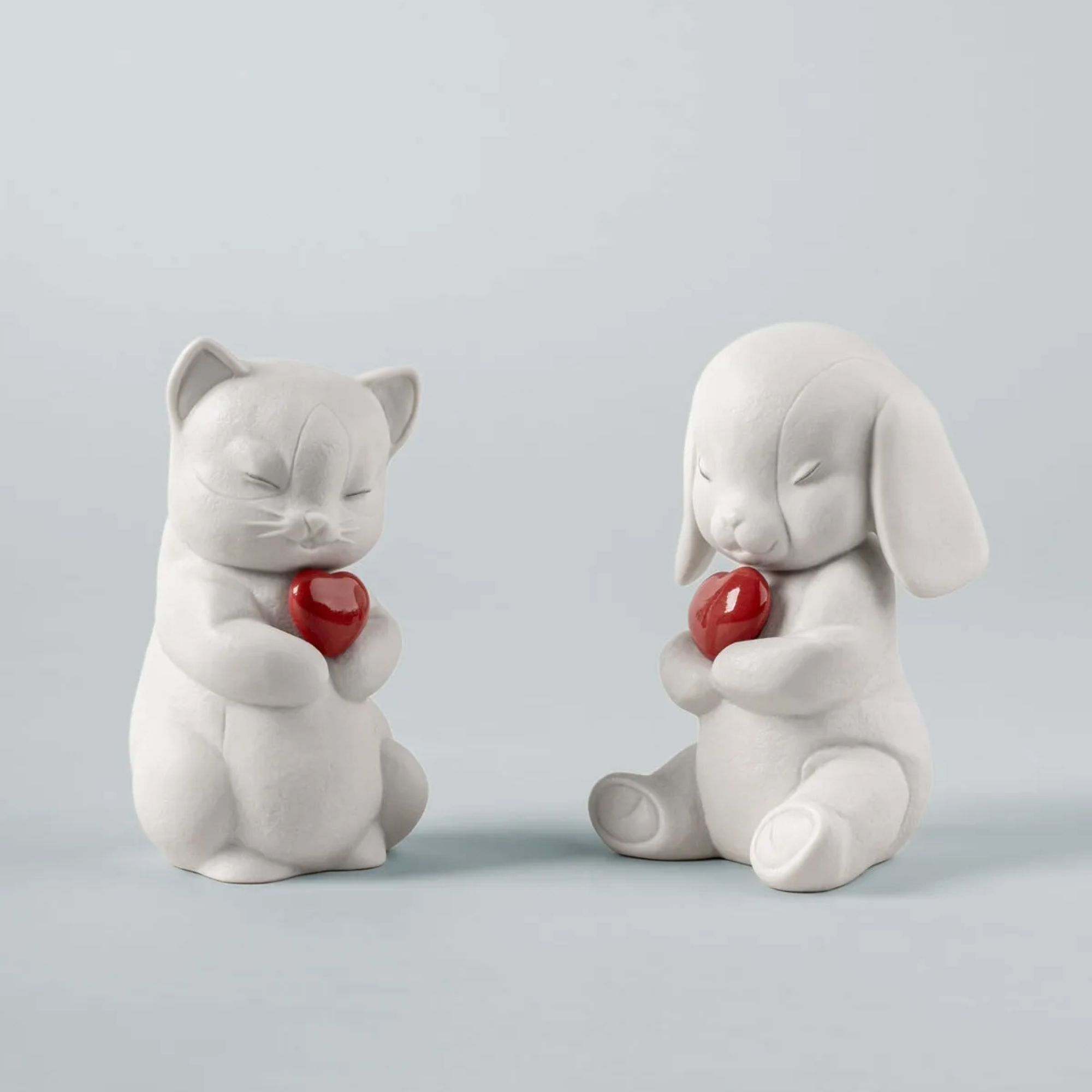 Playful Whiskers-Kitten sculpture crafted in porcelain. This extraordinary work of art encapsulates an ancient Eastern legend, revealing that some souls are eternal companions, connected by an invisible red thread of destiny, incapable of being separated despite distance or time. "Whiskers-Kitten" is not just a sculpture, but a symbol of intuition, generosity, protection, and loyalty, representing the various ways in which love can manifest itself. Eccentric and charming, this playful cat is modeled in splendid white porcelain, with a vibrant red heart emerging as a brilliant symbol of the unbreakable bond of the red thread. Every detail has been finely handcrafted, ensuring that "Playful Whiskers-Kitten" is not only a valuable addition to any collection but also a perfect gift for anyone wishing to express their love in a unique and lasting way.