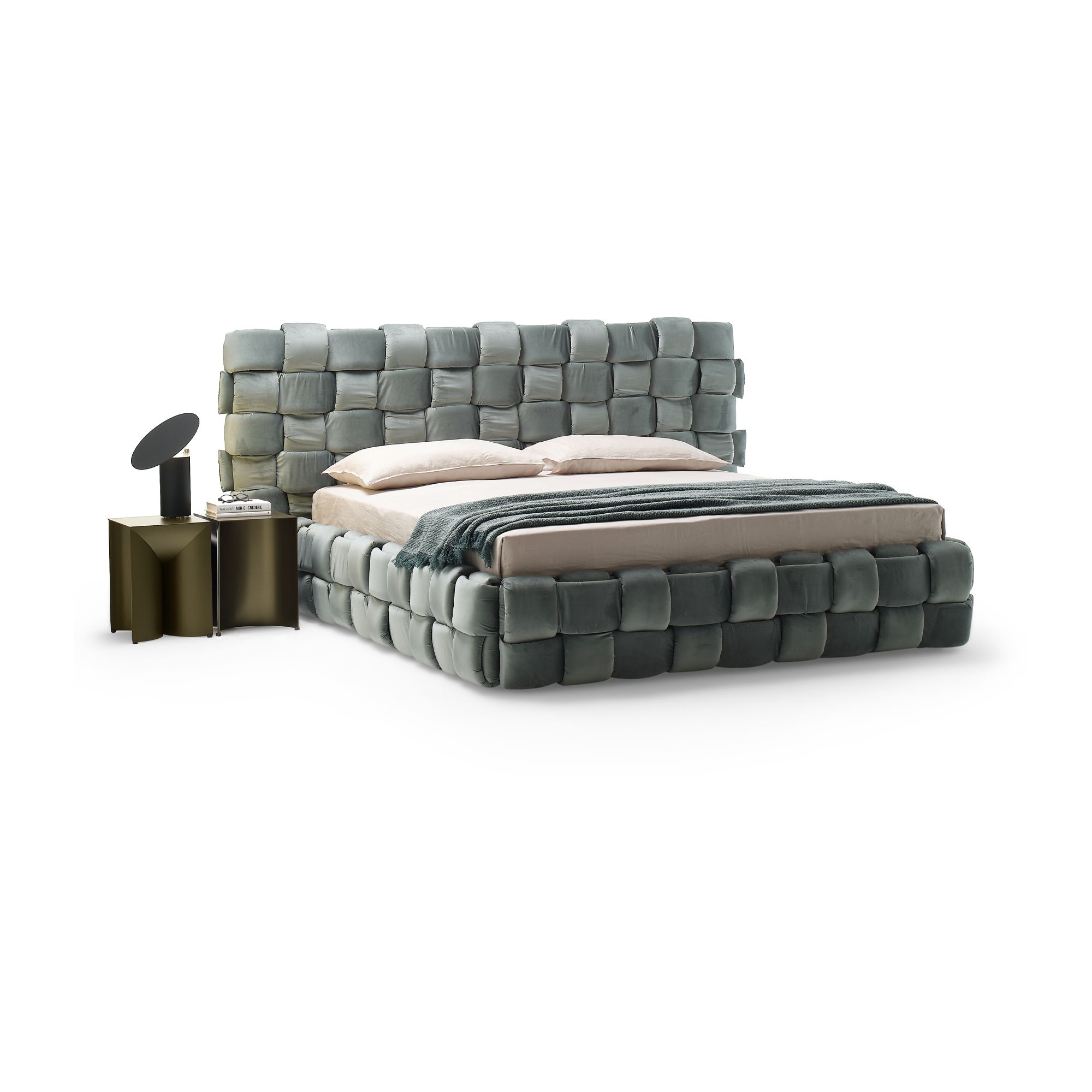 The Flirt upholstered double bed 180x200 cm comes complete with a slatted beechwood base. Available in various fabrics and colors, the Flirt bed embodies the essence of comfort and elegance down to the last detail. Crafted with a strong focus on design and well-being, this bed stands out for its large headboard and bed frame, both distinguished by a sophisticated macro-interwoven padding that not only enhances comfort but also adds a unique visual touch. The headboard, a focal point, provides ideal support for relaxation moments, such as evening reading, while also ensuring a scenic presence of great aesthetic impact. The innovative design of the Flirt bed makes it the perfect choice for those who wish to combine high functionality with a contemporary style. The generous padding ensures superior comfort, ideal for a restorative and rejuvenating sleep. The quality of the materials used ensures durability and resistance, keeping the bed's appearance always fresh and inviting. Beyond comfort and aesthetics, the Flirt bed is designed to perfectly adapt to different living contexts, from modern to more classic, thanks to its ability to harmonize seamlessly with various furnishing styles. This bed is not just a piece of furniture, but a true investment in sleep quality and bedroom harmony. Its presence transforms the environment into a personal, luxurious, and stylish retreat, where design and comfort meet to create an ideal setting for rest and relaxation. Designed by Bellavista & Piccini for Mogg.