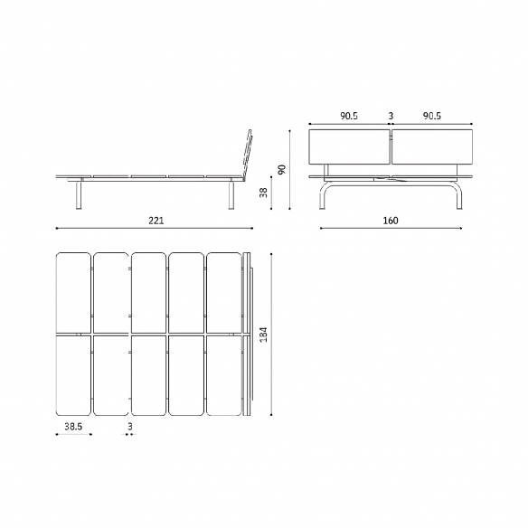 Dimensions: Height 90 cm, Length 184 cm, Depth 221 cm