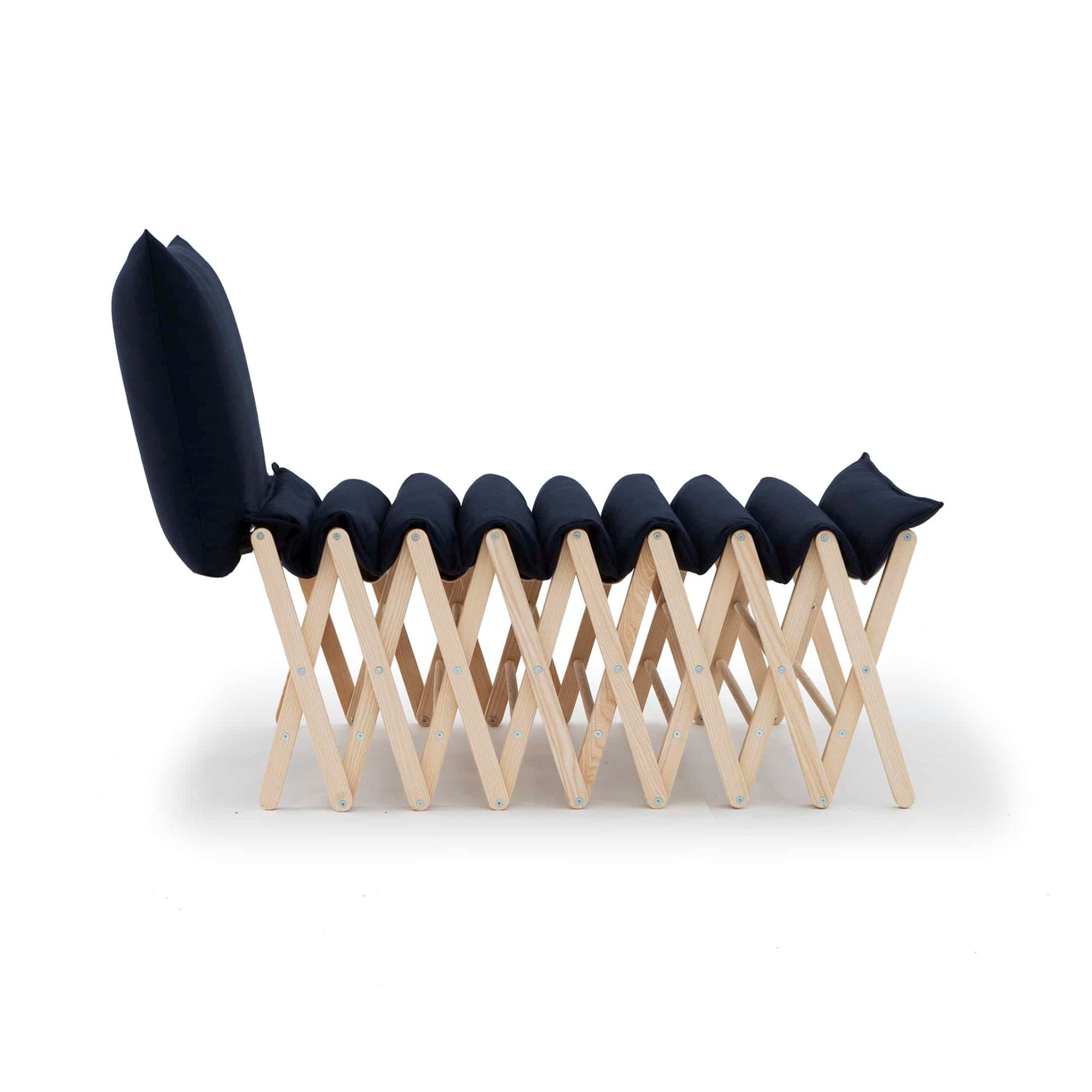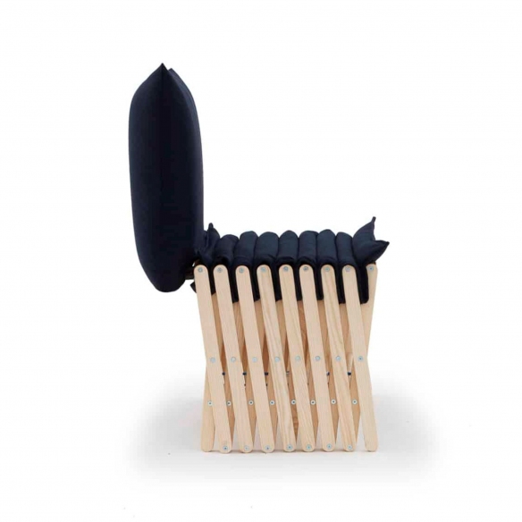 The Brando folding bed, crafted in ash wood and fabric, is a contemporary reinterpretation of the classic accordion-style camp bed, blending quality materials such as ash wood with elegant fabrics. This folding bed not only enhances space but does so with style: when closed, it serves as a cushioned bench enhanced by a reclining pillow, inspired by traditional pillows for immediate comfort and an inviting appearance. Opened, Brandon transforms into a comfortable emergency bed, ideal for accommodating guests unexpectedly yet always with a touch of refinement. Its smart design, focused on multifunctionality and the visual decluttering of spaces, makes Brando a versatile piece of furniture, able to adapt to different home environments and respond elegantly to the needs of those who live in small spaces or love to host. Brando is more than a simple piece of furniture: it is a concept of hospitality that is full of surprises, proving indispensable when an additional sleeping space is needed without sacrificing design and visual well-being of the decor. Designed by Giuseppe Arezzi for Campeggi.