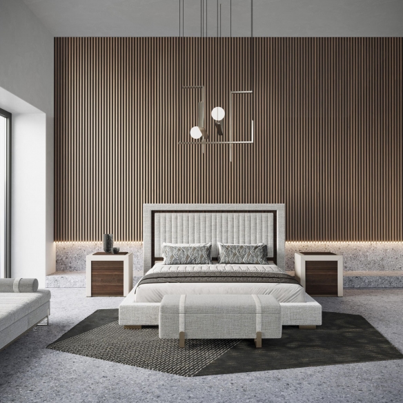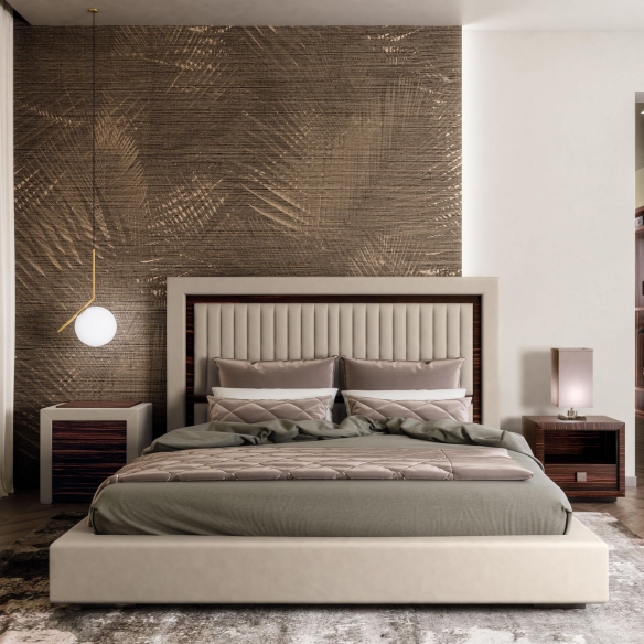 The Klass double bed is a true embodiment of class and luxury, crafted by Capital with a wooden frame, padding made with variable-density foam, and metal feet. This particular double bed is available in diverse combinations and boasts a balanced and elegant design characterized by simple lines and harmonious shapes, capable of seamlessly blending into any type of interior: whether it is placed in a traditional, modern, or contemporary bedroom, Klass instantly enhances both style and comfort. Every single detail has been thoughtfully engineered to improve your nightly experience, ensuring a peaceful and restful sleep. This is not merely a piece of furniture but an invitation to submerge into a supreme comfort embrace night after night. Designed by Boatto Martino Studio.