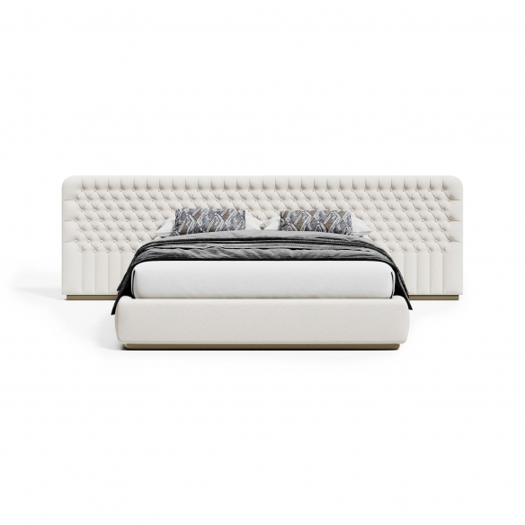 The Opera double bed is a true representation of class and luxury, crafted by Capital with a wooden structure, variable-density foam cushioning, and a metal base with metallic finishing profiles. This particular double bed is available in various combinations and boasts a balanced and elegant design characterized by flowing shapes that can harmoniously integrate into any type of decor, whether it be in a minimalist, classic, or modern bedroom, Opera instantly elevates both style and comfort. Its headboard, created with meticulous handcrafted button-tufting, epitomizes the pinnacle of classical elegance and artisanal savoir-faire: each button is carefully placed, creating a luxury pattern that delights the eyes and soothes the soul. This is not just a simple piece of furniture but an invitation to sink into a supreme embrace of comfort every night. Designed by Boatto Martino Studio.
