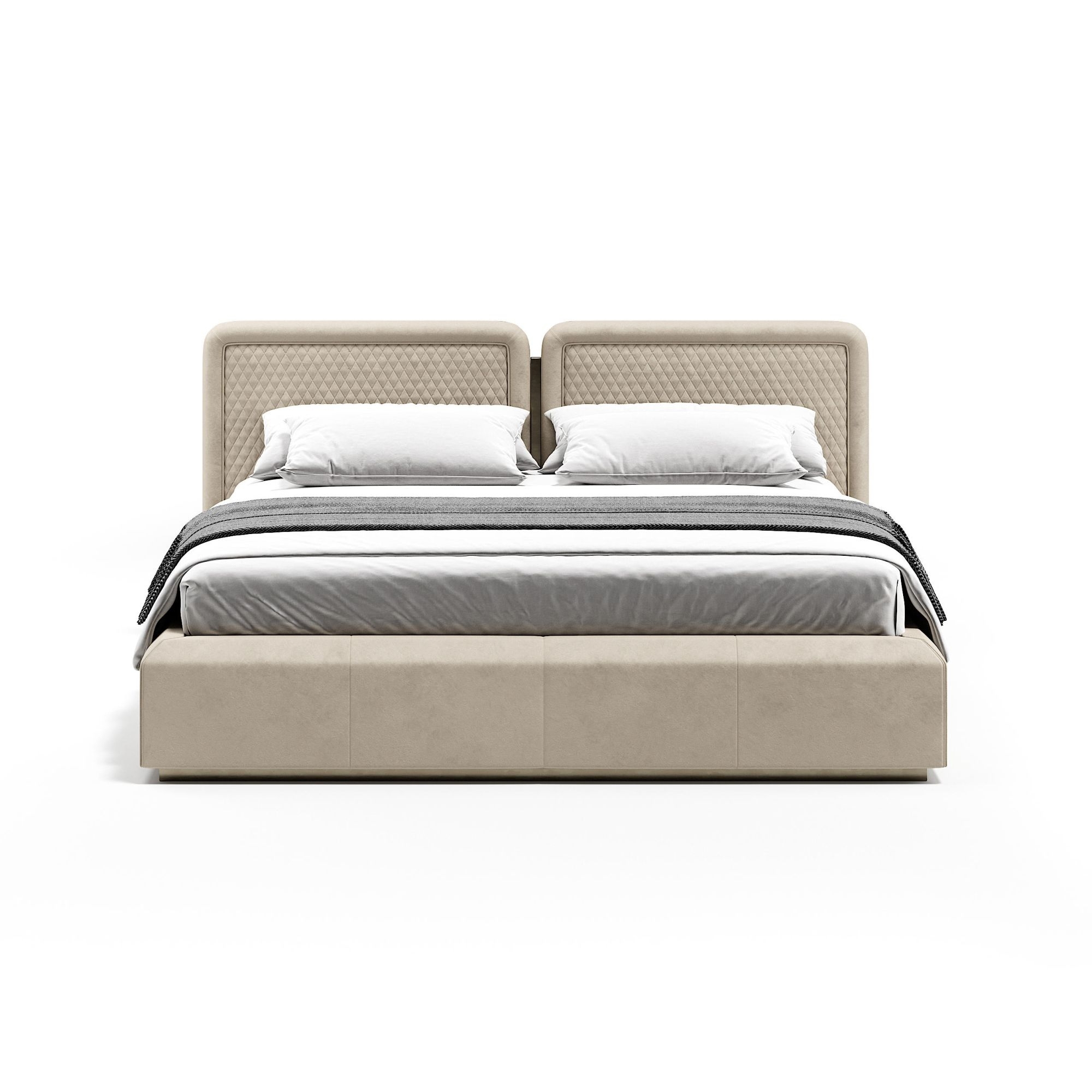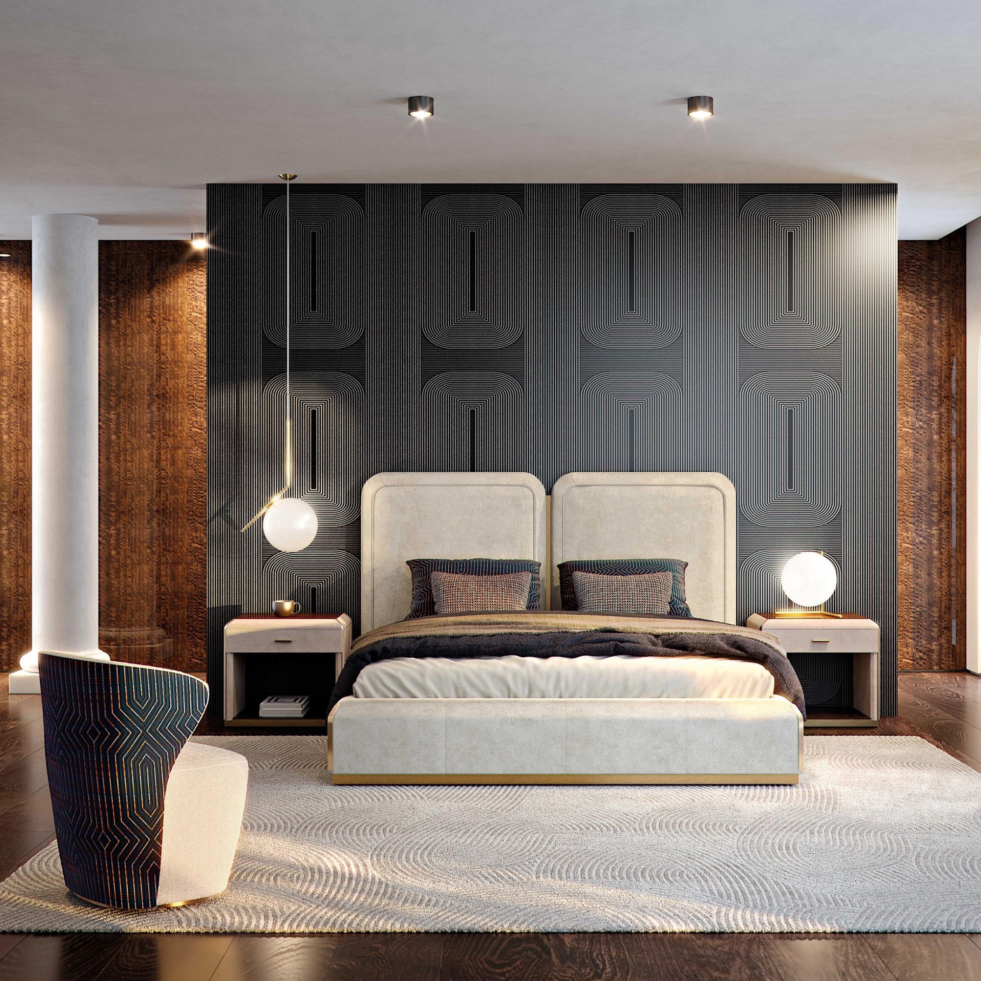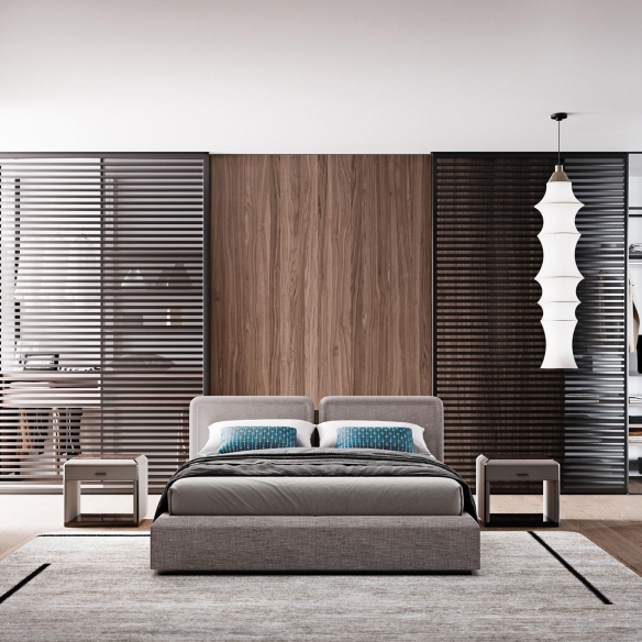 The Orion double bed, in its large version, is a true expression of class and luxury, crafted by Capital with a wooden structure, variable-density foam padding, and a metal base. This particular double bed is available in various combinations and features a balanced and elegant design characterized by clean lines and harmonious shapes, which can seamlessly integrate into any type of decor, be it in a minimalist, classic, or modern bedroom, Orion instantly uplifts style and comfort. The bed's new curved headboard adds a deep softness and provides a comfortable support. This is not just a piece of furniture, but an invitation to immerse yourself into a supreme embrace of comfort every night. Designed by Boatto Martino Studio.