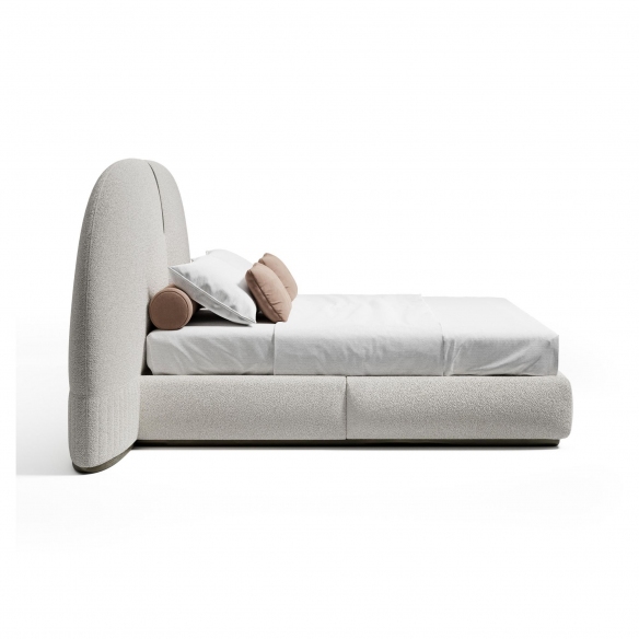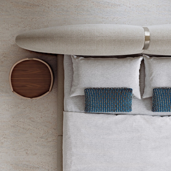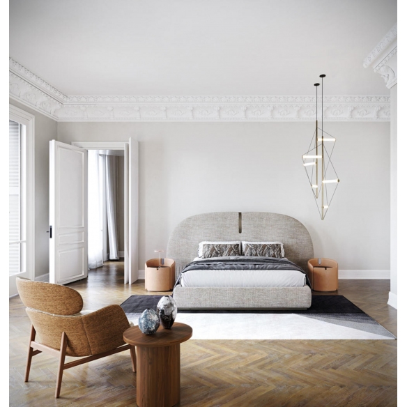 The Suite double bed is a true expression of class and luxury, crafted by Capital with a wooden structure, variable-density foam padding, and a metal base. This particular double bed is available in diverse combinations and features a balanced and elegant design characterized by soft lines and harmonious shapes, capable of seamlessly integrating into any type of decor, whether it be in a minimalist, traditional, or modern bedroom, Suite instantly raises the bar for style and comfort. The headboard stands out for its sculptural yet refined and soft appearance, where smooth leather and ribbed fabric join with precious brass. This is not just a piece of furniture but an invitation to plunge into a supreme embrace of comfort every night. Designed by Boatto Martino Studio.