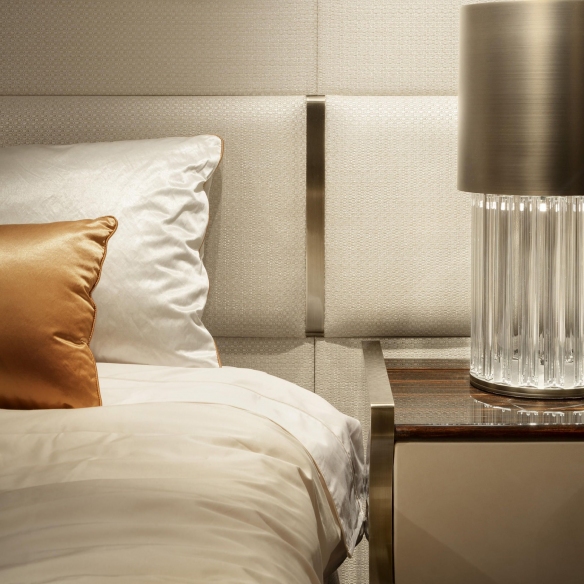 The Trilogy double bed, in its large version, is a true expression of class and luxury, crafted by Capital with a wooden structure, variable-density foam padding, and a metal base. This particular double bed is available in various combinations and features a balanced and elegant design characterized by soft lines and harmonious shapes, which can seamlessly integrate into any type of decor, whether it be in a minimalist, traditional, or modern bedroom, Trilogy instantly elevates the style and comfort. Trilogy uniquely and elegantly furnishes the space dedicated to rest. A series of panels separated by a metal profile are used as a headboard, which can be made in various leathers and fabrics. This is not just a piece of furniture, but an invitation to immerse yourself in a supreme embrace of comfort every night. Designed by Boatto Martino Studio.