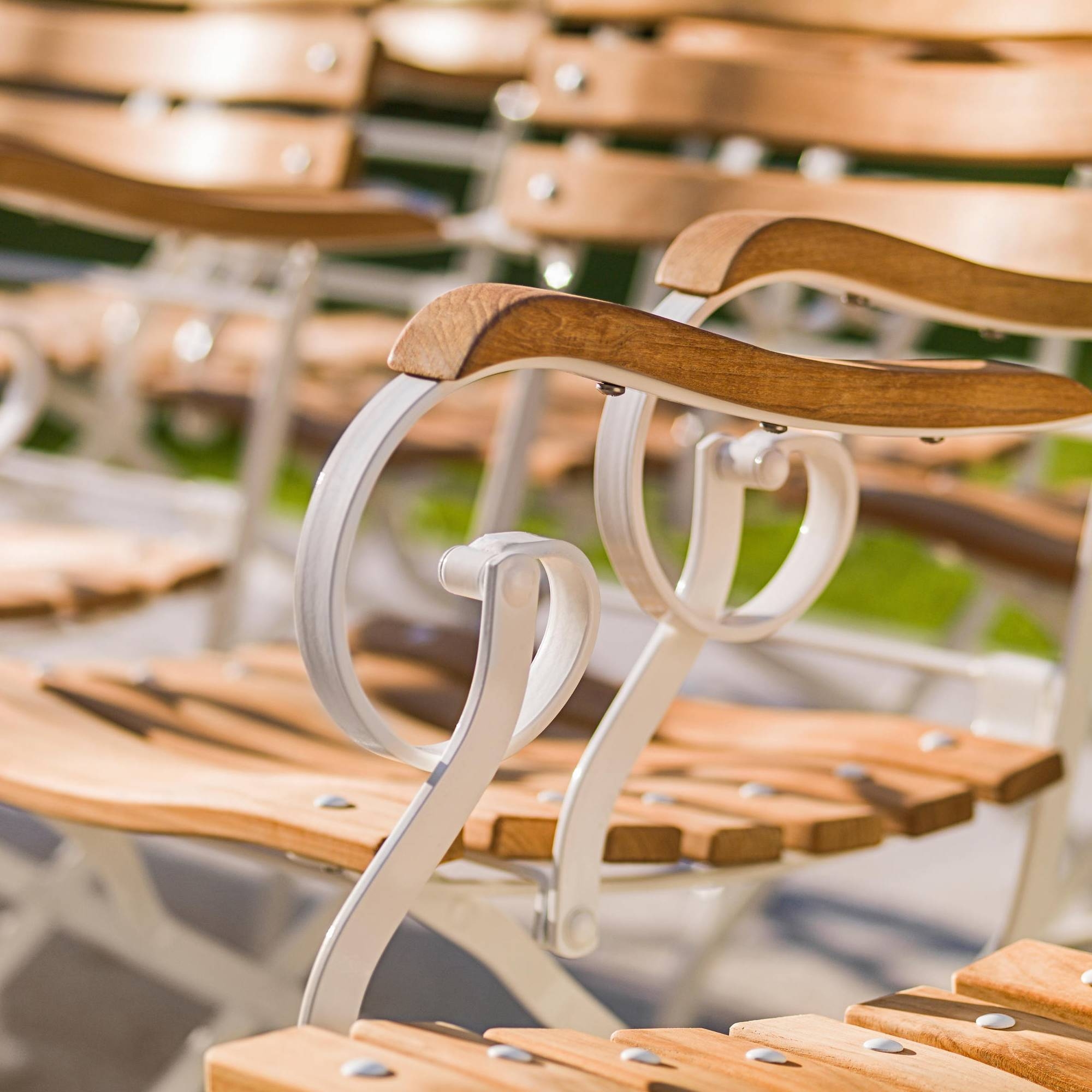 The Classic 2-seater outdoor bench with Armrests, featuring a painted aluminum frame and solid Teak seat and backrest, is available in 3 frame colors. The Classic outdoor bench is designed to enhance gardens, terraces, and any outdoor space with elegance and functionality. Crafted with high-quality materials, this outdoor bench promises longevity and weather resistance, owing also to its sturdy armrests which provide additional comfort. The added value of this outdoor bench lies in its versatility: it's perfect for quiet relaxation moments alone or as additional seating during outdoor social gatherings, making the Classic bench with armrests by Weishäupl the ideal choice for those seeking a balance between style and practicality. Easy to clean and maintain, this piece of outdoor furniture does not require intensive care and ensures high durability. Made by Weishäupl.