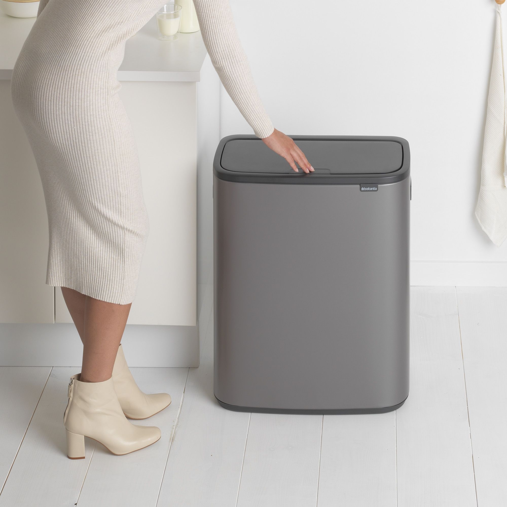 Bo Touch Bin, with a capacity of 60 liters, made with metal structure and removable plastic baskets. Available in 8 elegant and versatile color finishes, the Bo Touch Bin is the ideal accessory for waste separation, thanks to the three internal buckets. It opens with a light touch: opening with the soft-touch system allows you to lift the lid by simply touching it! Adjustable non-slip legs adapt to great stability. Compact and space-saving, the Bo Touch Bin fits easily into any corner of the house! A free pack of PerfectFit pouches is included. Designed and projected by Brabantia.