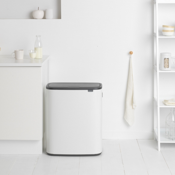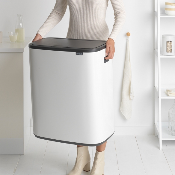 Bo Touch Bin, with a capacity of 60 liters, made with metal structure and removable plastic baskets. Available in 8 elegant and versatile color finishes, the Bo Touch Bin is the ideal accessory for waste separation, thanks to the three internal buckets. It opens with a light touch: opening with the soft-touch system allows you to lift the lid by simply touching it! Adjustable non-slip legs adapt to great stability. Compact and space-saving, the Bo Touch Bin fits easily into any corner of the house! A free pack of PerfectFit pouches is included. Designed and projected by Brabantia.