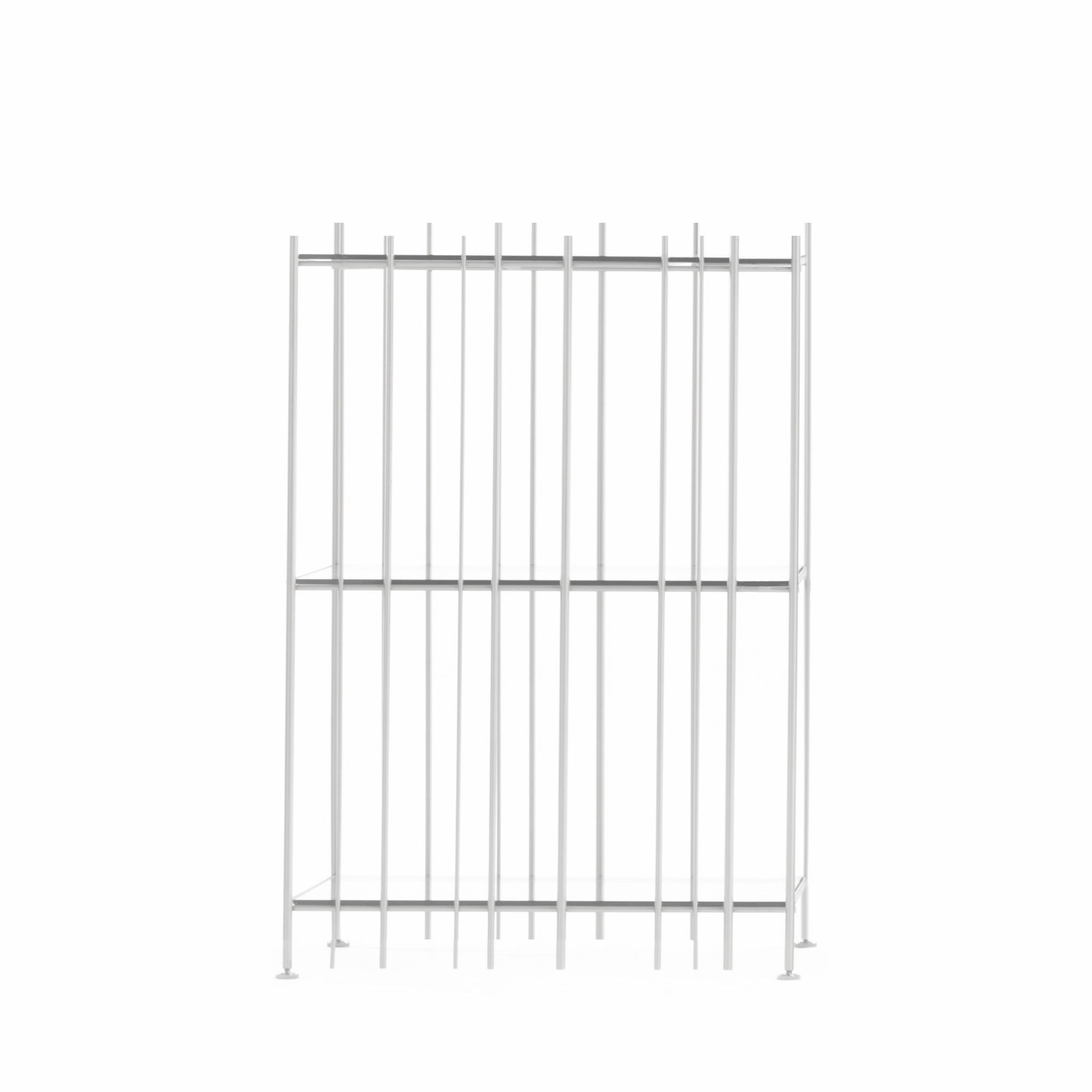 Metrica D bookcase, made with metal structure and glass shelves. Available in the splendid finishes in burnished, gold and titanium as regards the structure and in green or bronze as regards the shelves, Metrica is a bookcase with a simple design: the rhythm is marked by iron rods fixed at different intervals, on a structure rigorous, ready to be filled with books and objects. Ideal for furnishings with a contemporary taste, Metrica is preparing to become the protagonist of your living environments. Designed by Ctrlzak for Mogg.