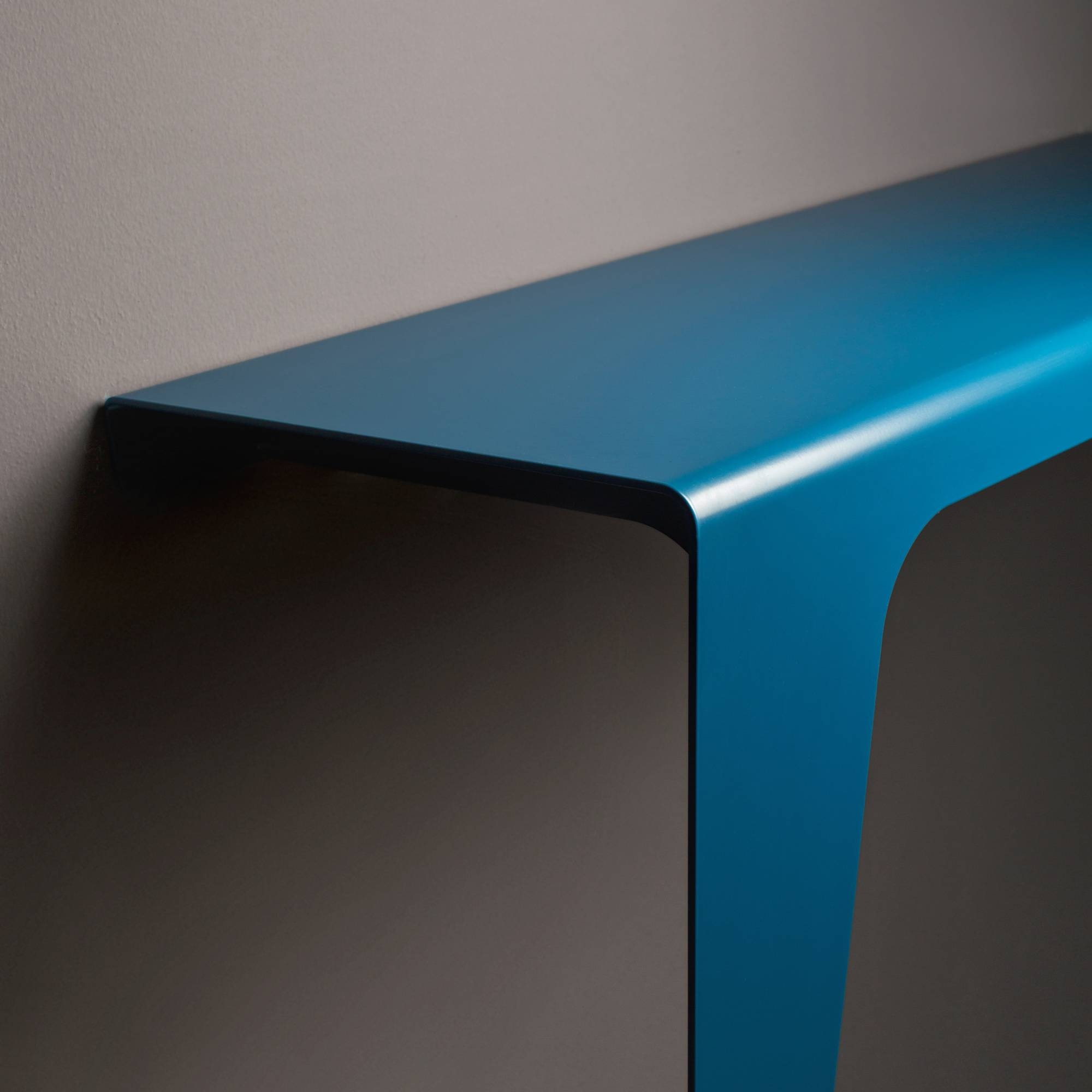 Lama console made of powder-coated metal. Available in 16 RAL colors and 2 metallic finishes, the Lama console features clean and essential lines, creating a furnishing accessory that perfectly combines minimal design and functionality. Can be positioned in the living room, at the entrance or in living environments. Designed by Carlo Trevisani for Meme Design.