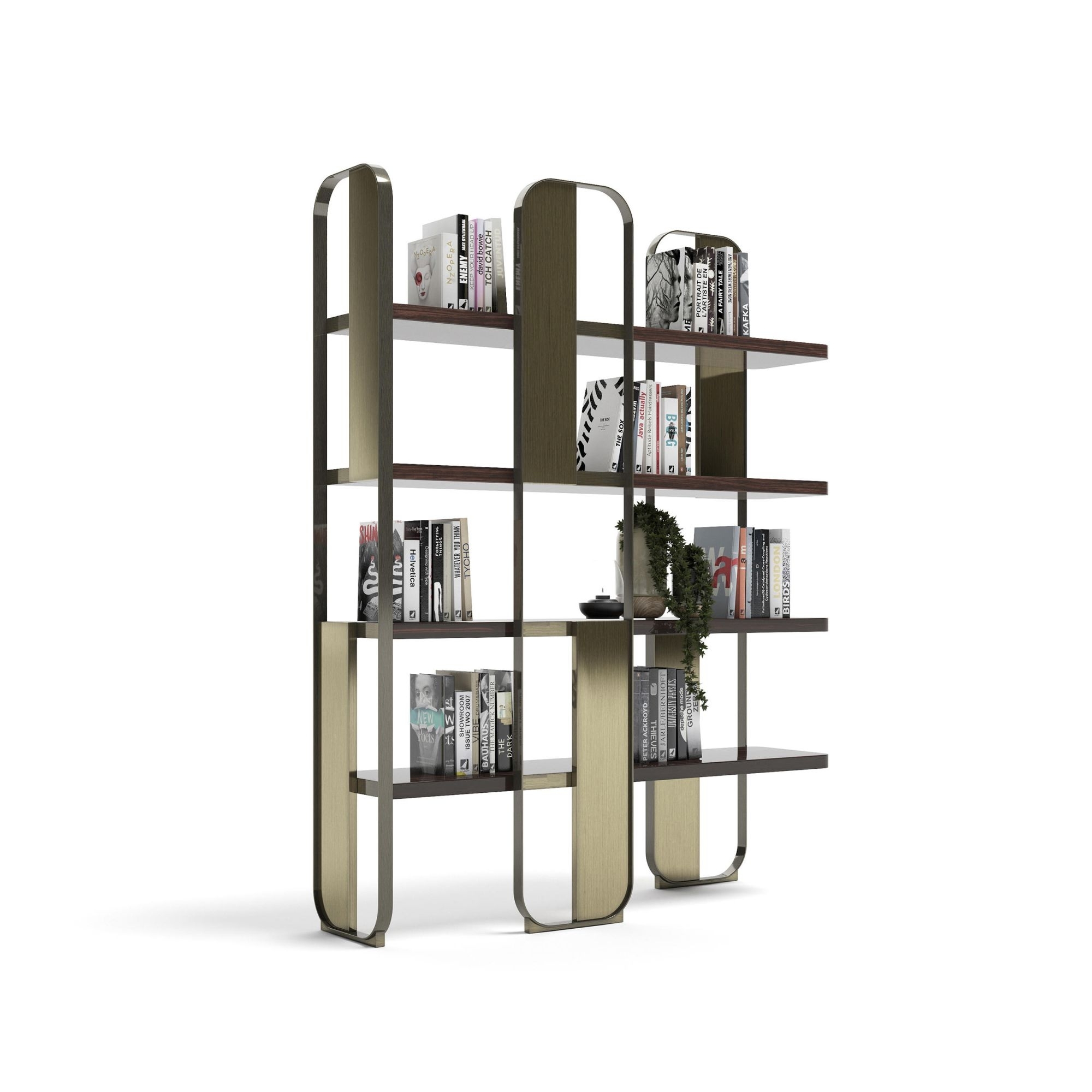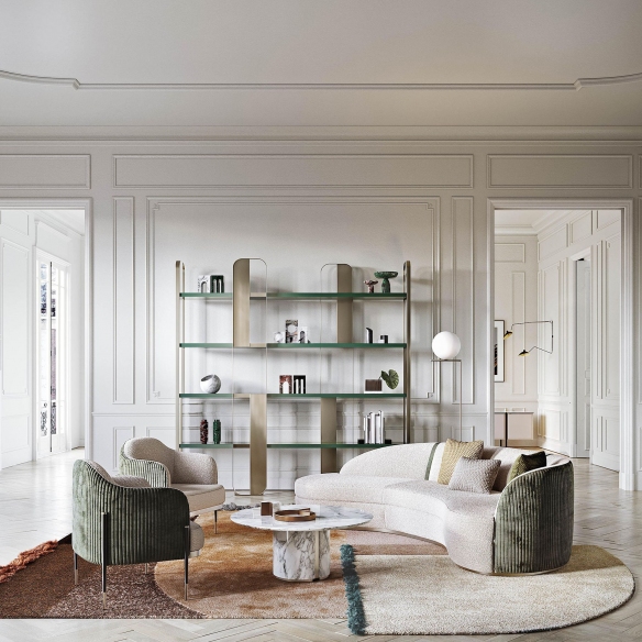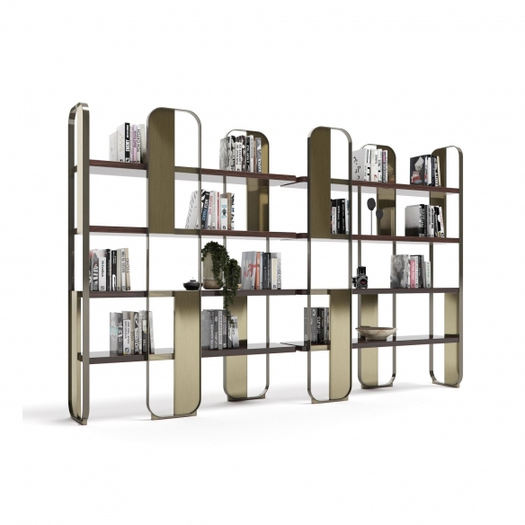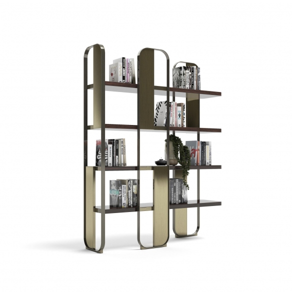 The Giselle modular bookcase, with dimensions of 152x43x197h cm, is a contemporary design gem crafted by Capital, featuring a metal structure, metallic finish panels, and wood essence shelves. This magnificent bookshelf showcases a modular system that combines lightness, aesthetics, and craftsmanship, and thanks to its combinational availability, the bookcase is customizable and perfectly matches any space and decor style. Whether it is placed in a professional studio, within a minimalist design living room, or in a chic home library, Giselle is capable of capturing the attention of guests, adding a touch of luxury to any environment. Additionally, the bookcase offers significant capacity without being cumbersome, aiming to host a large number of books, decorative items, collections, lamps, and much more, allowing for personalization according to individual tastes and display needs. This fantastic modular bookcase, Giselle, is a true union of functionality, art, and innovation. Designed by Boatto Martino Studio.