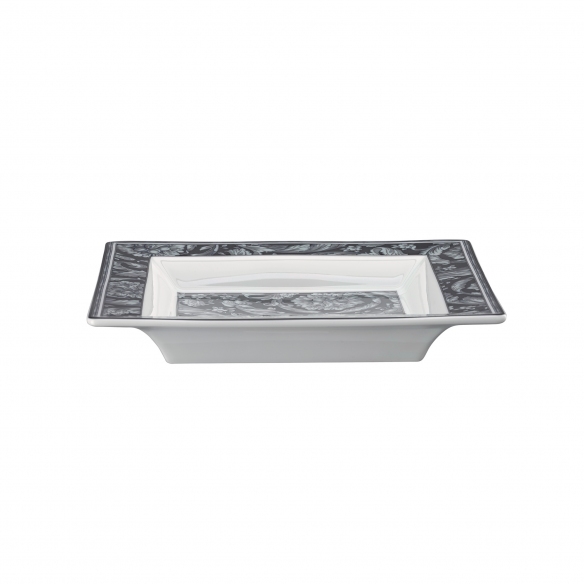 Barocco Haze Square Cup (22x22 cm), crafted in decorated porcelain. Thanks to its unique square shape and baroque design, enhanced by an almost artistic attention to detail, the Barocco Haze Square Cup becomes the focal point in any setting, from classic to more modern environments. The shades of the haze color, together with the intricate details, make each piece unique and a true work of art. For those who love to surround themselves with timeless beauty and style, the Barocco Haze Square Cup is the ideal choice. Its versatility makes it suitable not only as a furnishing complement but also as an exclusive gift for special occasions, symbolizing refined taste and attention to detail. Created by Rosenthal Versace.