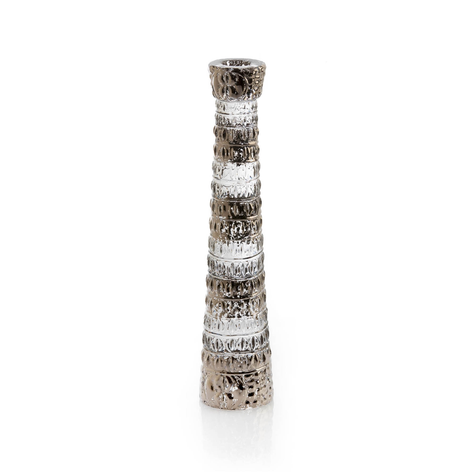 The Crocodile Platin candlestick has been crafted by Roberto Cavalli in 24% PbO crystal, a material that is both elegant and durable; it is not just an accessory that lights up the room but a piece of furniture that symbolizes luxury and high fashion design. This beautiful candlestick features a unique design inspired by the crocodile in a platinum tone, which is accentuated through transparent crystal. Thanks to its style, Crocodile Platin can be integrated into any setting: whether placed in a living room, on a shelf, or as a centerpiece in a lounge, this candlestick catches the guests' attention and expresses grandeur and luxury. The Crocodile Platin candlestick is perfect as a gift idea for birthdays, housewarmings, or other special occasions. Amaze everyone and purchase this wonderful Roberto Cavalli-signed accessory right here, on Newpop.it!