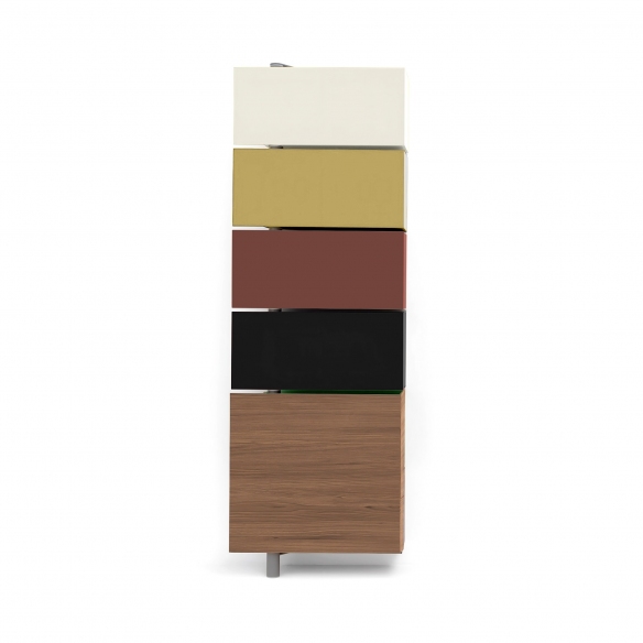 The Giralot collection by Sculptures Jeux is a collection of storage furniture with a colourful, original and functional design, which revolutionizes the space making it more livable and lively. The Giralot collection was born from the idea of designer Stefano Bettio, who created a system of 180° rotatable elements, which open and close with a simple gesture. The Giralot collection is made up of storage furniture of different sizes and types, which can be used in different ways and environments. Containers, wardrobe furniture, shoe racks, bathroom furniture and much more, made with the highest quality materials, such as Touch (lacquered) or Tranciato (wood), available in a variety of shades and finishes. Giralot furniture is modular and customizable furnishing proposals, which offer infinite possibilities of compositions and combinations. A collection created to transform the concept of containment, converting it into a creative and dynamic experience.