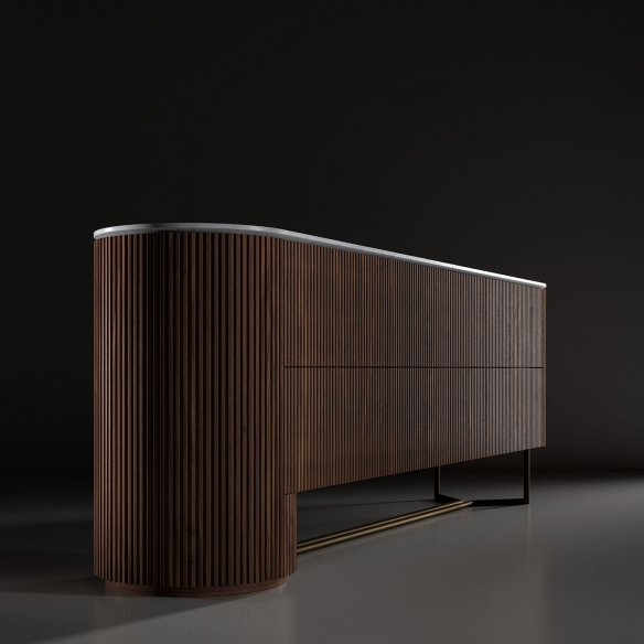 The Cernobbio drop-front sideboard, with dimensions of 225x45x77h cm, is a piece of design that embodies the elegance of Milano 1964, crafted with a lacquered metal structure and a top made of marble or wood. Available in a variety of combinations, this sideboard with drop-front doors harmoniously fits into any setting, whether placed in a living room or a kitchen, Cernobbio becomes the protagonist of the space, capable of amazing and satisfying all senses. Made with high-quality materials, the Cernobbio sideboard stands out for the unique shape of its top: rectangular but with slightly curved long sides, giving it an elegant and smooth appearance. The Cernobbio drop-front sideboard emerges not only as a spacious and functional container but as a true masterpiece capable of adding a touch of class and naturalness to your home. Let yourself be inspired by this beautiful collection, and discover all the spectacular products of Milano 1964 right here on Newpop.it!