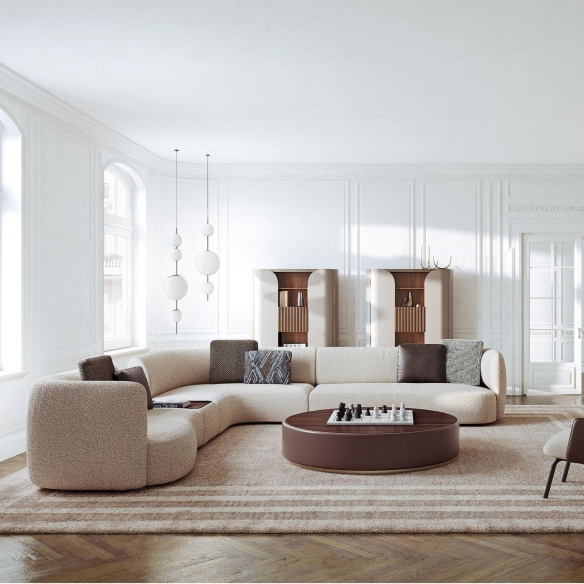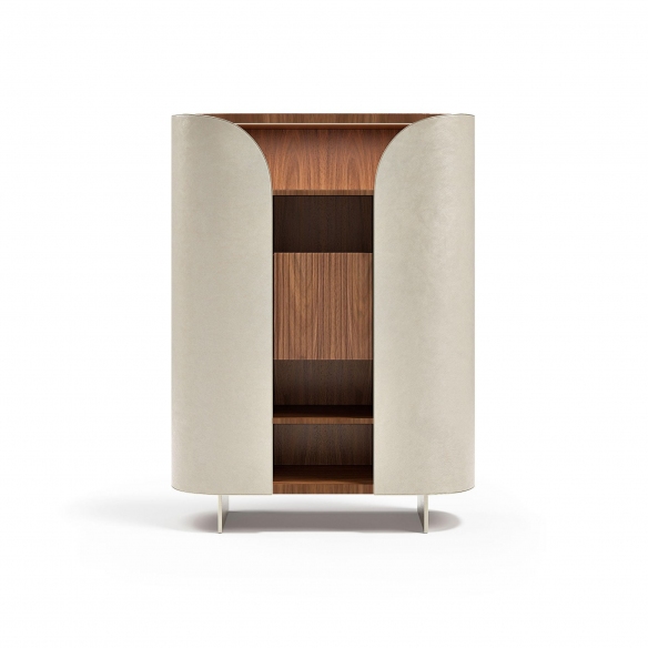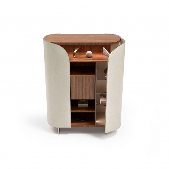 The Duna sideboard stands out as a masterpiece of design crafted by Capital, featuring a structure available in both wood essence and lacquer. The two doors can be chosen from wood essence, lacquer, or smooth leather; the interior is enriched with bronzed glass shelves. The open section includes two customizable shelves in wood essence or lacquer, and the container with two doors is available in wood essence or lacquered with a cannè effect. Thanks to its variety of combinations, the Duna can be perfectly matched to any setting, whether it be a living room, study, or bedroom, bringing the breathtaking atmosphere and sense of freedom found in the vast desert. Indeed, the sideboard embodies the essence and wild elegance of the majestic desert dunes. Duna elegantly and naturally meets everyday needs: its spacious interiors organize essential objects and accessories, while the smooth opening of the doors is a tribute to the thoughtful engineering behind its beauty. Designed by Boatto Martino Studio for Capital.