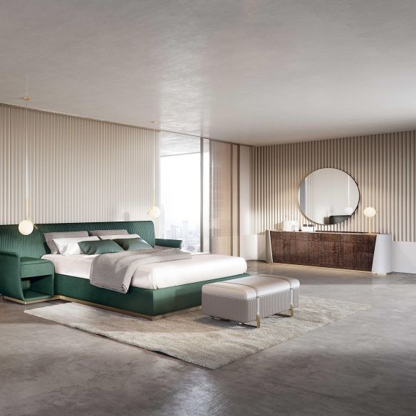 Majestic is a wonderful sideboard crafted by Capital featuring a core structure, leather sides, a metallic finish base, and a top in either marble or wood, materials that ensure unparalleled gloss and significant durability. This sideboard is marked by an elegant and sophisticated design and, with its various combinations, can be easily integrated into any setting and type of decor: whether placed in a bedroom, living room, or a professional study, Majestic is not just a piece of furniture, but a true style object that reflects the personality and taste of the owner. Additionally, its surface has been designed to accommodate every type of decorative object, from lamps to vases. With its delicate and graceful presence, the Majestic sideboard brings a touch of class and luxury to the home. The sideboard is available with four push-pull doors and optional internal drawers. Designed by Boatto Martino Studio.
