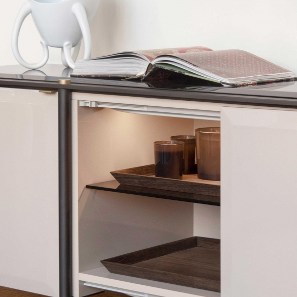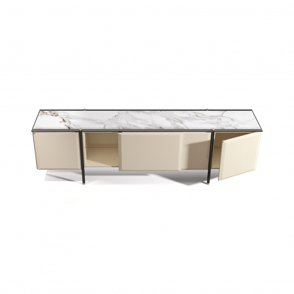 The Tudor sideboard is a charming piece of furniture crafted by Capital, capable of adding class and luxury to your indoor spaces. This sideboard is made from high-quality materials such as wood, marble, and metal, available in various exquisite finishes, giving each piece a unique style, from classic to contemporary. Whether positioned within an elegantly designed modern office or a traditional style living room, the Tudor transforms the environment completely and captures the attention of guests. Additionally, the inside of the sideboard is equally functional, equipped with internal crystal shelves that provide ample space for organizing decorative objects or various household accessories. Capital also offers the option to include LED lighting inside the sideboard, creating a warm and sophisticated atmosphere. Designed by Boatto Martino Studio for Capital.