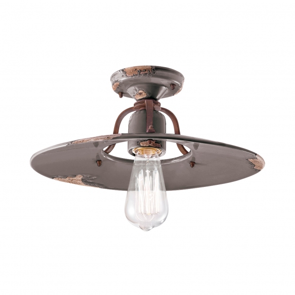 C1445 ceiling lamp made of ceramic with cor-ten antiqued iron frame. Available in different colors to adapt to your style and furnishings, the C1445 ceiling lamp is ideal for lighting a hallway, a living room or an entrance and giving charm to your spaces with a diffuser that recalls the lamps of yesteryear and a rust effect deliberately recreated on the ceramic. Light source 1x77W E27 - IP20. Designed and manufactured by Ferroluce.
