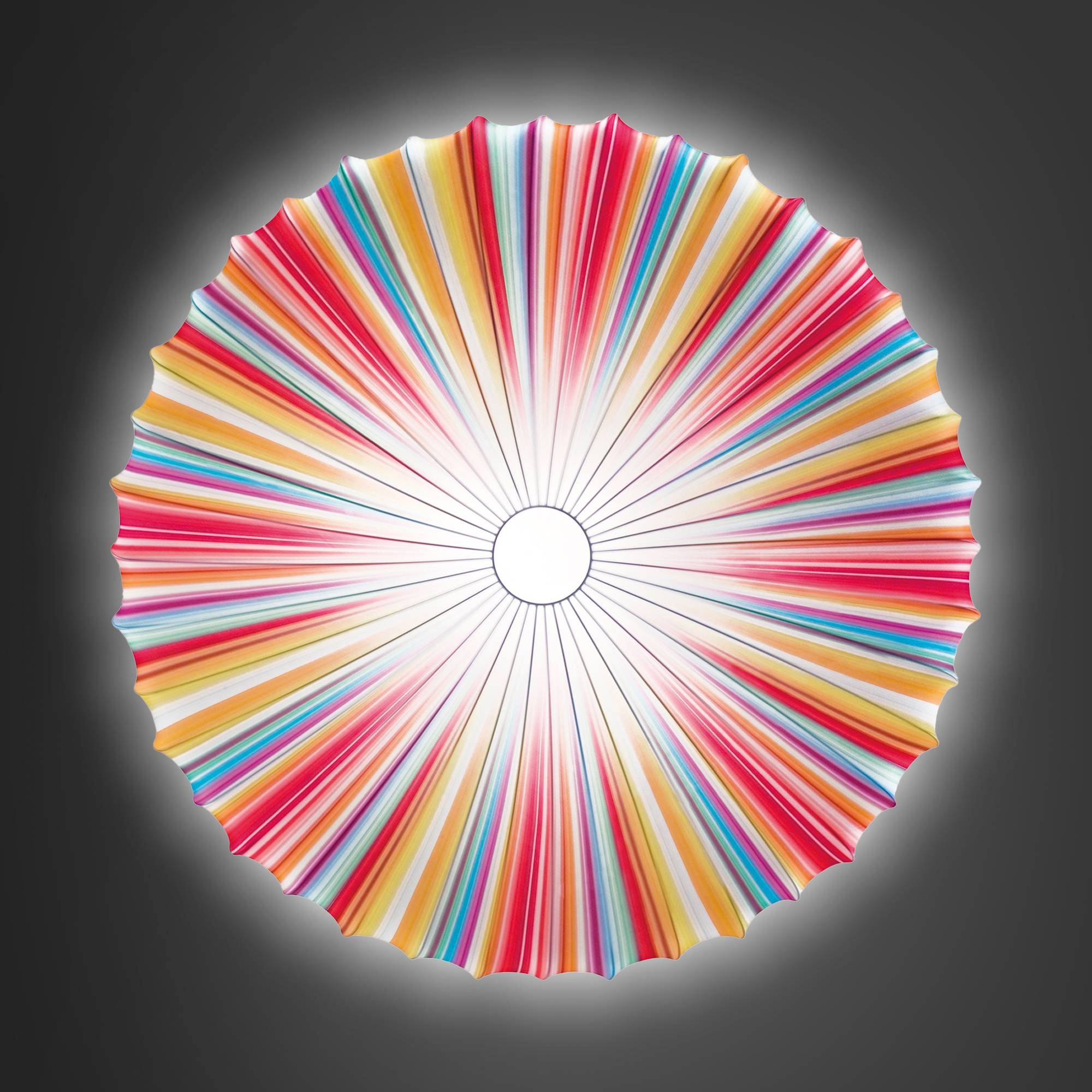 When joy meets inspiration, Muse is born. This ceiling lamp is an explosion of energetic colors, sensual lines and flowing fabrics, forming a work of lighting art that defies the imagination. Muse breaks the mold of traditional lighting design, highlighting how immersive and fun it can be. Its sinuous lines appear to move and undulate, evoking images of fabrics blowing in the wind or waves crashing. Muse's vibrant colors are equally bold, releasing energy and joy and brightening not only the room, but also the mood. Muse's uniqueness and innovation have not gone unnoticed. In 2009, the lamp won the prestigious 'Good Design Award' in recognition of its exceptional aesthetics and functionality in the Lighting category. Muse comes in four different sizes, offering a certain flexibility to find the correct size for your space. Whether you're looking for soft lighting for a bedroom or a statement piece for a living room, there's a version of Muse that fits your needs perfectly. The Muse ceiling lamp is not just a lighting element, but a point of reference, an inspiration and a joy. With Muse, you create not just a lit room, but a vibrant atmosphere that oozes personality and charisma.
