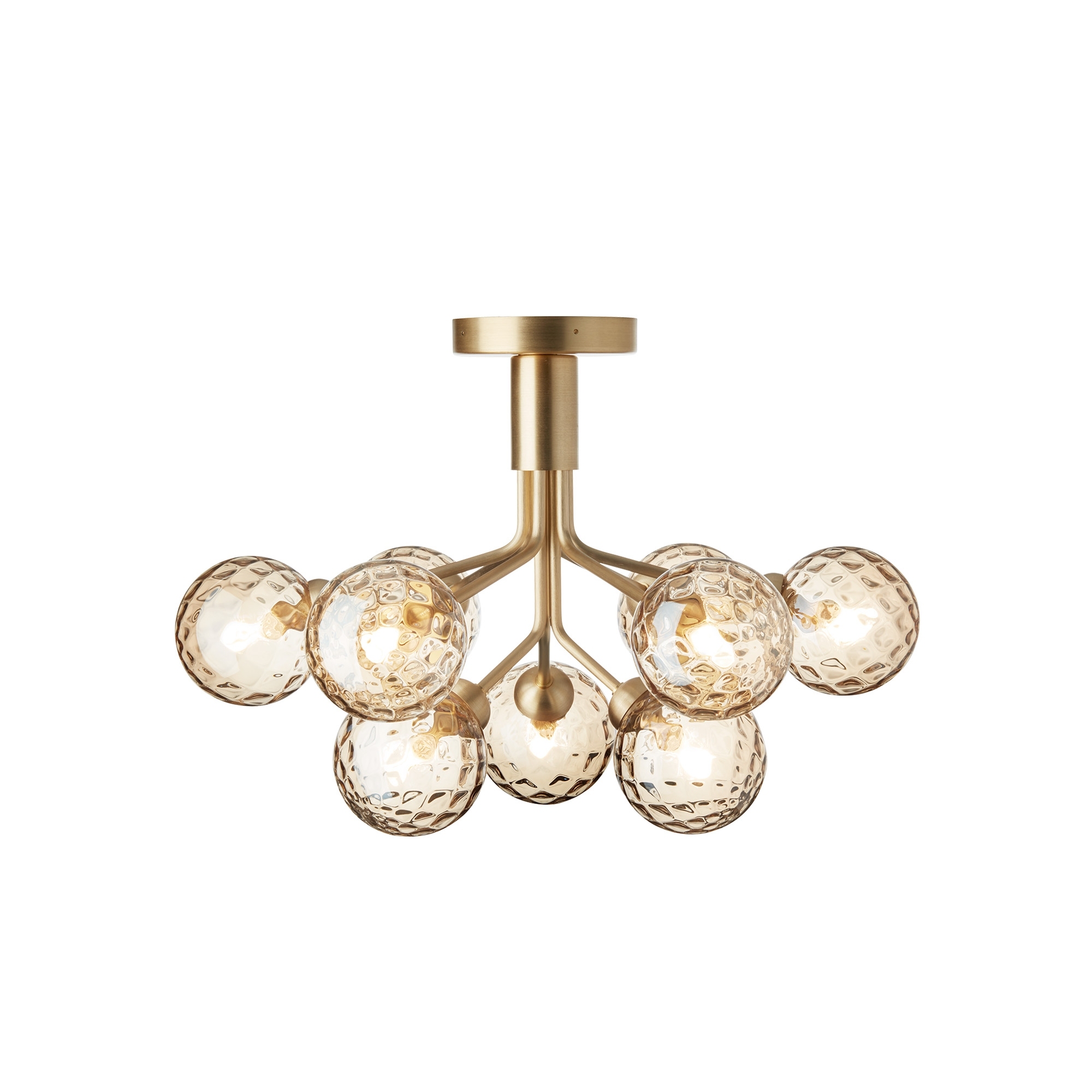 Apiales 9 ceiling lamp, crafted in metal, is a jewel of the Nuura collection. Available in 4 combinations, Apiales 9 is a ceiling lamp featuring 9 globes made of blown glass. This lamp brings a touch of elegance and light to any room, fitting seamlessly with all types of decor, from the most modern office settings to the classic living rooms of your home. The Apiales 9 ceiling lamp combines sustainability, efficiency, and beauty thanks to its integrated LED technology. Inspired by the extraordinary beauty of floral clusters, Apiales 9 evokes the delicacy of nature, creating an oasis of peace and relaxation. Designed by Sofie Refer for Nuura.