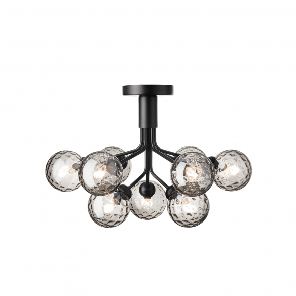 Apiales 9 ceiling lamp, crafted in metal, is a jewel of the Nuura collection. Available in 4 combinations, Apiales 9 is a ceiling lamp featuring 9 globes made of blown glass. This lamp brings a touch of elegance and light to any room, fitting seamlessly with all types of decor, from the most modern office settings to the classic living rooms of your home. The Apiales 9 ceiling lamp combines sustainability, efficiency, and beauty thanks to its integrated LED technology. Inspired by the extraordinary beauty of floral clusters, Apiales 9 evokes the delicacy of nature, creating an oasis of peace and relaxation. Designed by Sofie Refer for Nuura.