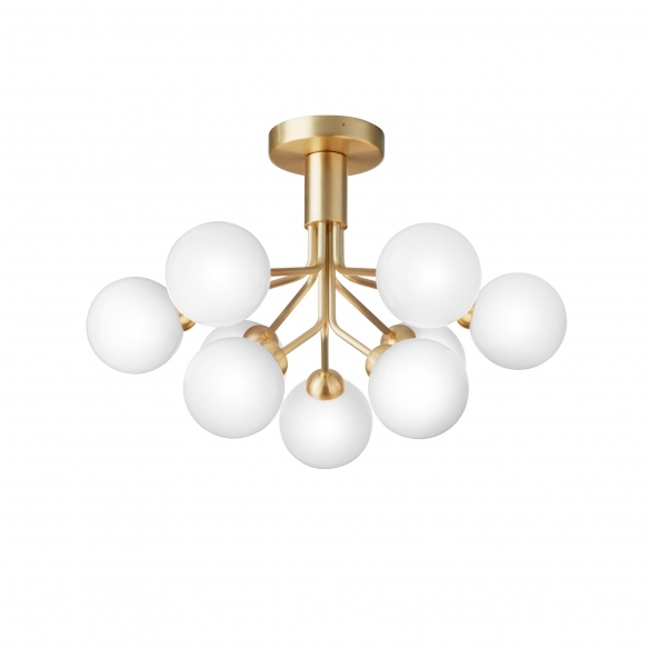 Apiales 9 ceiling lamp, crafted in metal, is a jewel of the Nuura collection. Available in 4 combinations, Apiales 9 is a ceiling lamp featuring 9 globes made of blown glass. This lamp brings a touch of elegance and light to any room, fitting seamlessly with all types of decor, from the most modern office settings to the classic living rooms of your home. The Apiales 9 ceiling lamp combines sustainability, efficiency, and beauty thanks to its integrated LED technology. Inspired by the extraordinary beauty of floral clusters, Apiales 9 evokes the delicacy of nature, creating an oasis of peace and relaxation. Designed by Sofie Refer for Nuura.