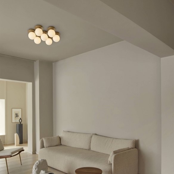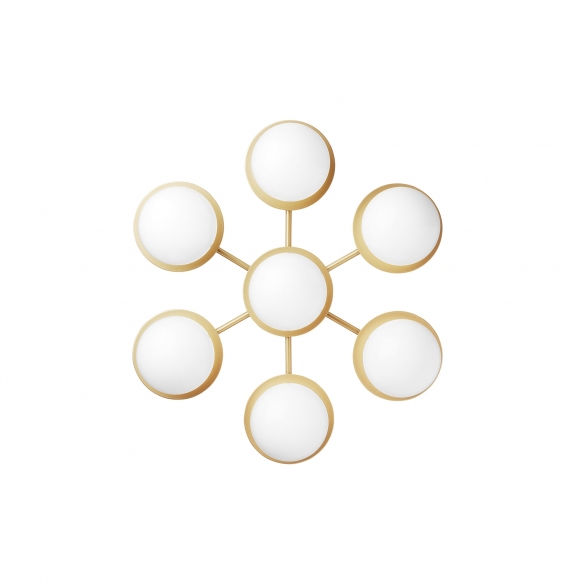 Liila Star ceiling/wall lamp is expertly crafted from metal by skilled artisans. Available in two combinations, it is inspired by the bright stars of the night sky. The Liila Star ceiling/wall lamp is perfect for transforming residential or commercial spaces into true modern art galleries. Its structure is made of metal and the 7 mouth-blown glass spheres are the focal points of this artwork. Integrated LED technology ensures intense and continuous lighting, demonstrating how innovation can go hand in hand with sustainability. The star formation of Liila Star is perfect for decorative lighting on dropped ceilings. Designed by Sofie Refer for Nuura.