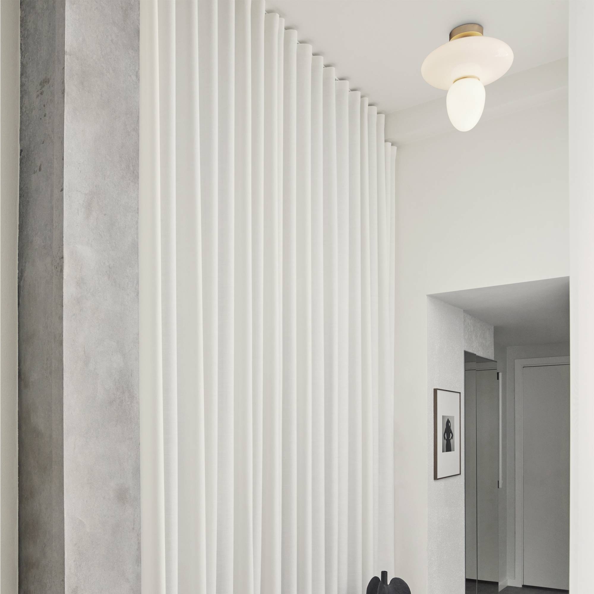 Rizzatto 42 ceiling lamp features a metal rose and an elliptical glass shade. Available in two diverse finishes, it perfectly complements any setting, from classic residential to the more minimalist style of commercial spaces. The geometric and organic shapes found in this lamp are inspired by the Triadisches Ballett, offering a unique and intense design. Equipped with state-of-the-art LED technology, the Rizzatto 42 illuminates spaces with bright light while consuming minimal energy. This lamp is easy to install and acts as a piece of modern art, rendering any room precious and elegant. Designed by Paolo Rizzatto for Nuura.