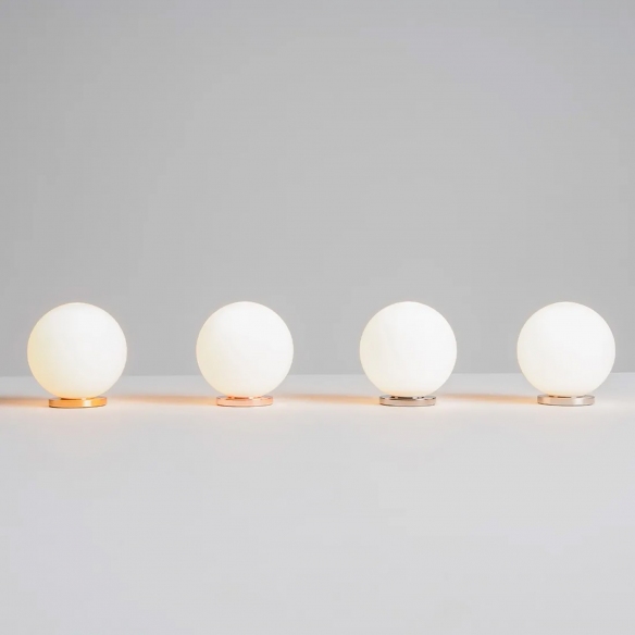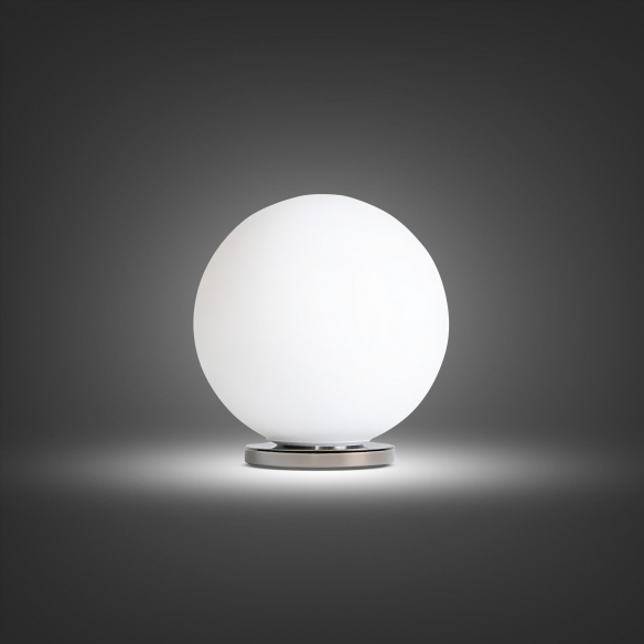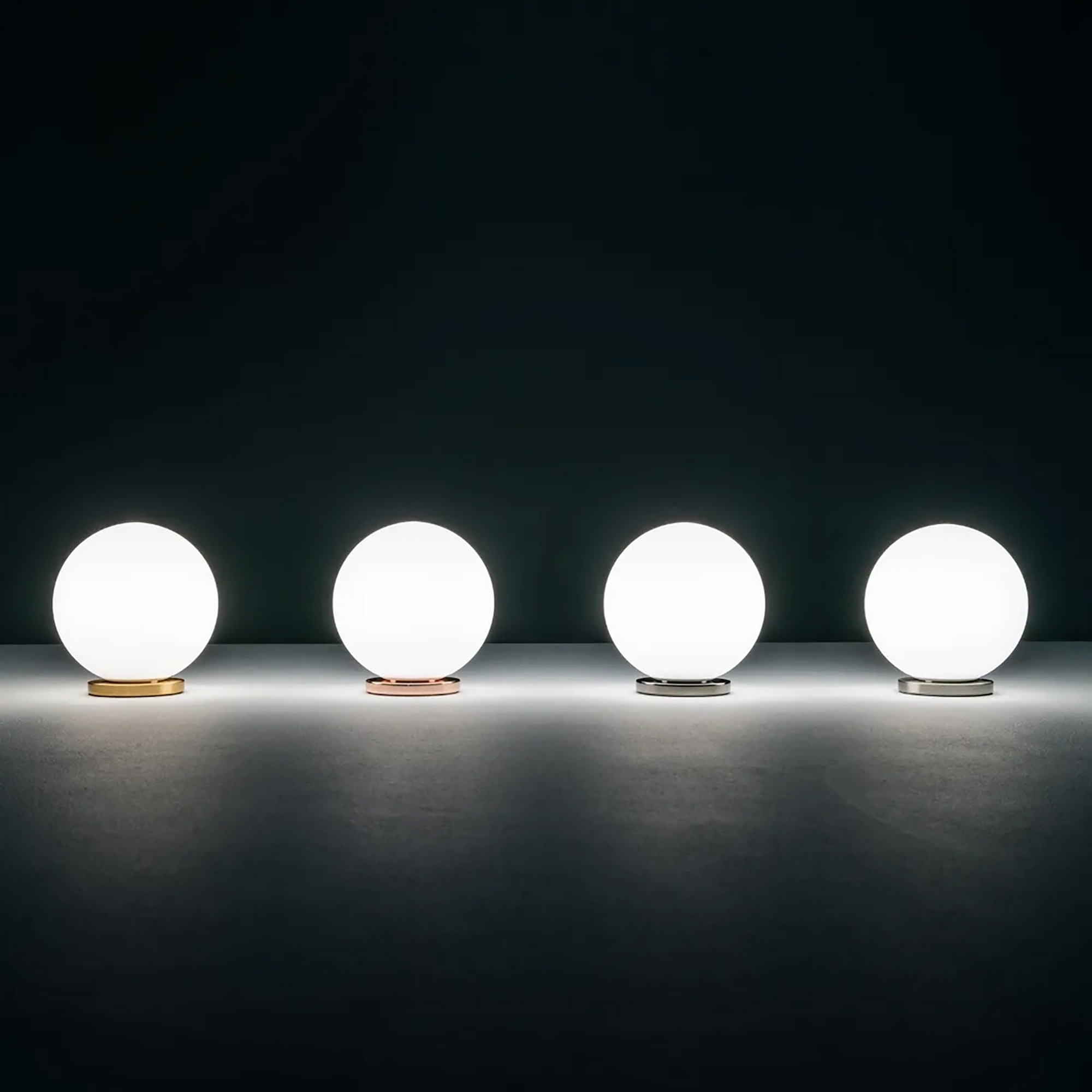 The Pallina table lamp is crafted with a galvanized metal structure, a diffuser in satin opaline blown glass, and embodies the perfect union between energy efficiency, style, and innovation. Available in four beautiful colors, the Pallina table lamp represents the synergy between the perfect form of the sphere and the elegance of glass, making it the most essential item in the Fontana Arte catalog. Pallina, a true must-have, will find its rightful place in every corner of the home thanks to its universal shape and its warm and inviting light. This piece brings a warm and welcoming light to every room, telling the story of Italian design through its unique style. The essence of the perfection of glass and the sphere combines to offer a piece that is, without a doubt, a must for all those who love quality design. Designed by FontanaArte Design Lab.