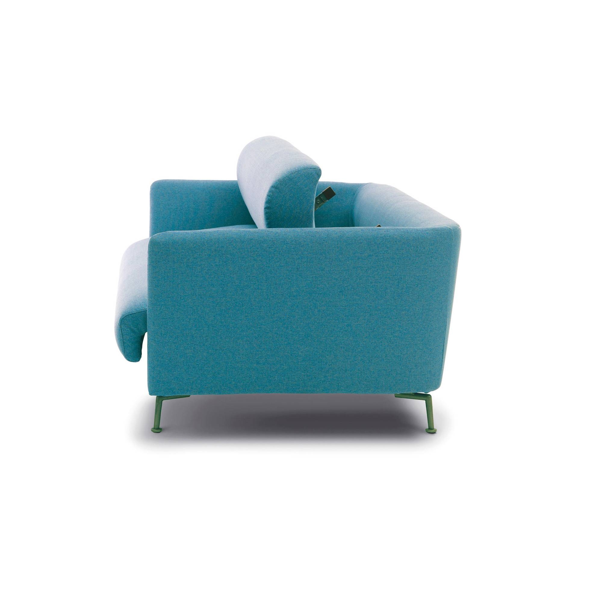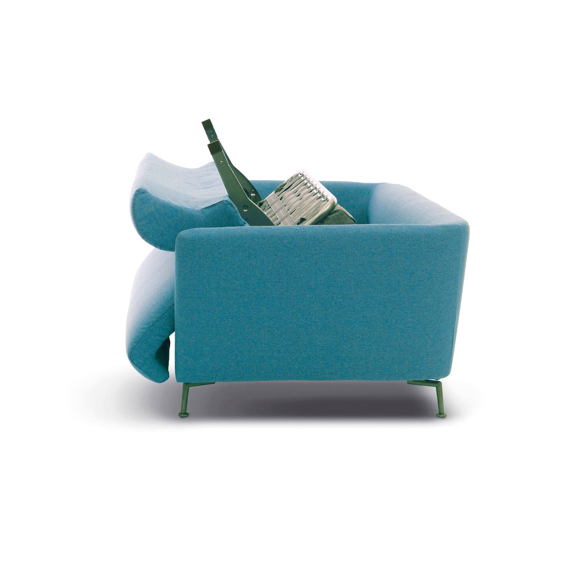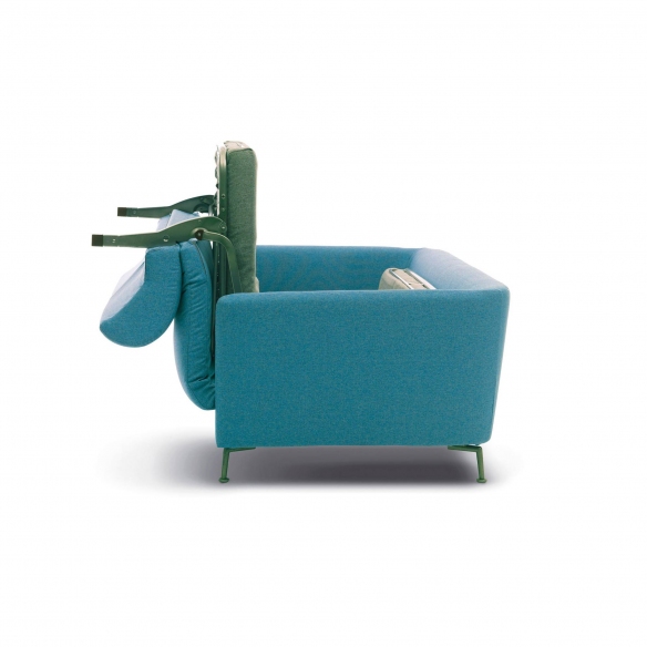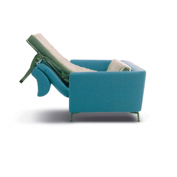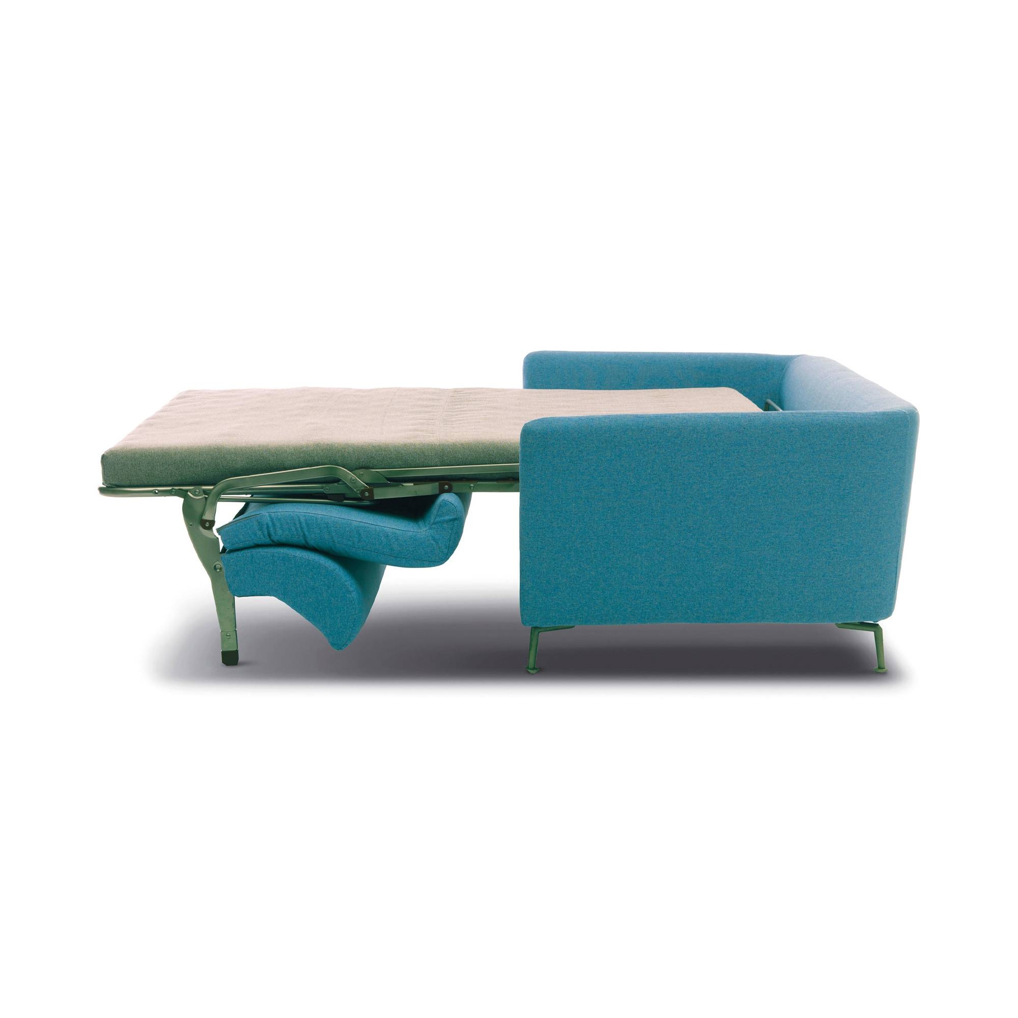Brooklyn large double sofa bed 160x200 cm made with satin aluminum feet, electro-welded mesh rest surface and polyurethane mattress. Removable covers in various fabrics and colours, the Brooklyn double sofa bed stands out for its ability to blend a retro-inspired aesthetic with contemporary details. The Brooklyn silhouette is designed not only to embellish any environment, but also to ensure timeless comfort. The true magic of Brooklyn is revealed the moment it transforms into a bed. Thanks to an intuitive extraction system, it offers a comfortable resting surface hosted by an electro-welded steel mesh mesh. The generously thick mattress is designed to guarantee superior sleep quality, allowing you and your guests to enjoy a night's rest in maximum comfort. One of the most appreciated aspects of the Brooklyn double sofa bed is the presence of removable headrests, designed to increase comfort without compromising the elegant aesthetics of the sofa. Headrests are a perfect example of how functional design can integrate harmoniously with style. The Brooklyn double sofa bed represents the ideal choice for those looking for classy, versatile and functional furniture. Bring a touch of comfort, style and innovation to your living room. Designed by Giulio Manzoni for Campeggi.