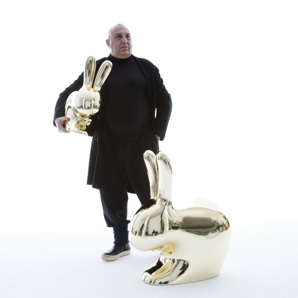 The Rabbit Chair with a metal finish is an inimitable piece of whimsical and creative design, produced by Qeeboo entirely from recyclable polyethylene, a material of the highest quality that ensures durability, resistance, and ease of maintenance and cleaning. This splendid chair is available in four gorgeous colors: gold, silver, copper, and pearl black, which makes it adaptable to any setting, whether it be a modern-styled bedroom or a minimalist living room. The sinuous shape represents a rabbit, and it can be used either by leaning on the ears or from the opposite side, inviting users to lean back and relax comfortably. Furthermore, the chair is characterized by a metal finish, lending it an elegant and sophisticated style. Don't miss the opportunity to have a piece of furniture that epitomizes creativity and pleasure in your home. Designed by Stefano Giovannoni for Qeeboo.